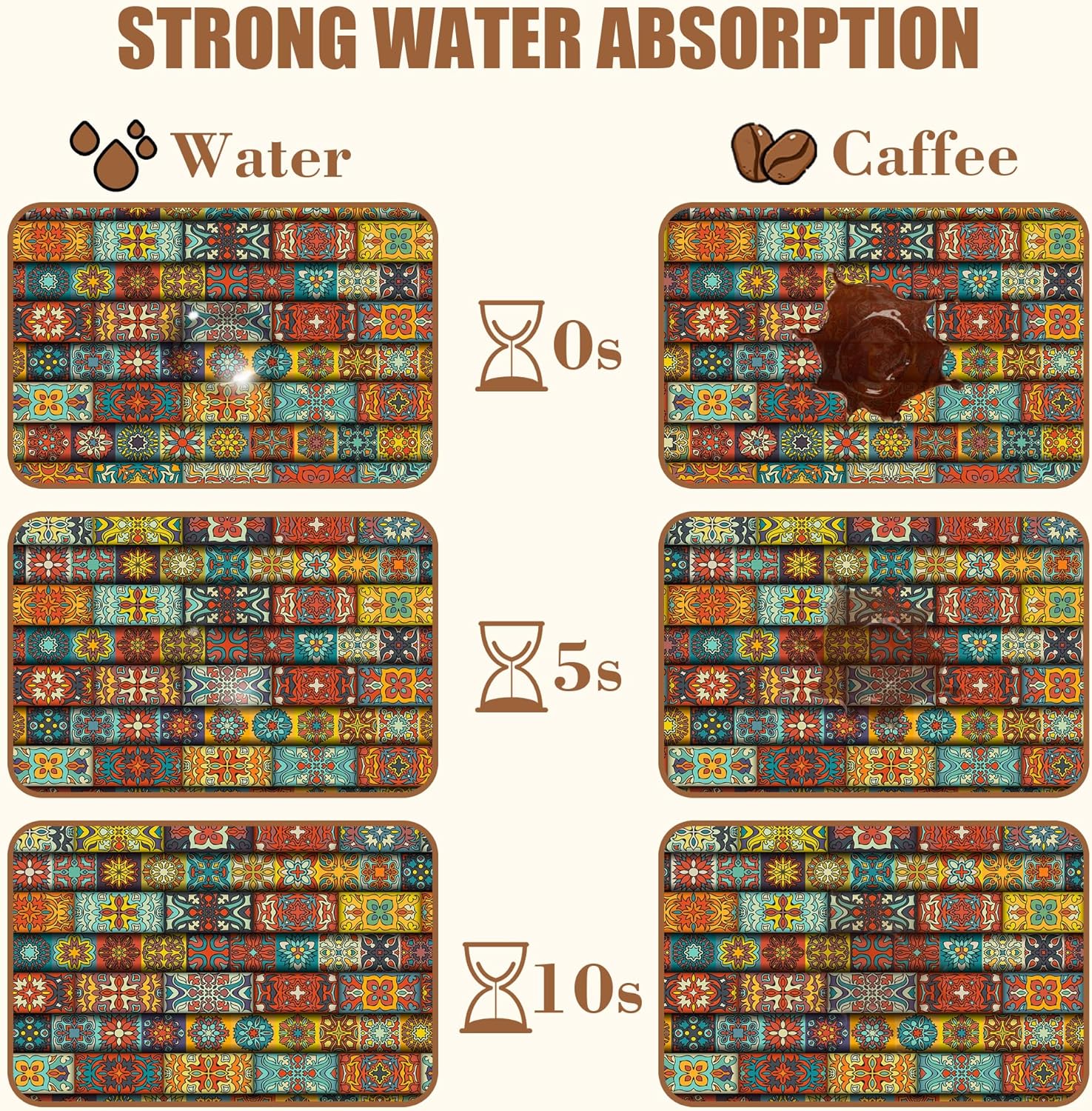 - 【Absorbent & Quick-Drying】The surface of this coffee mat is made of absorbent microfiber and the middle is made of composite sponge, which can absorb up to 4 times its weight in water and has a strong water absorption capacity. The high-density design makes it fast drying and can quickly absorb spilled liquids to keep your counter or desktop dry