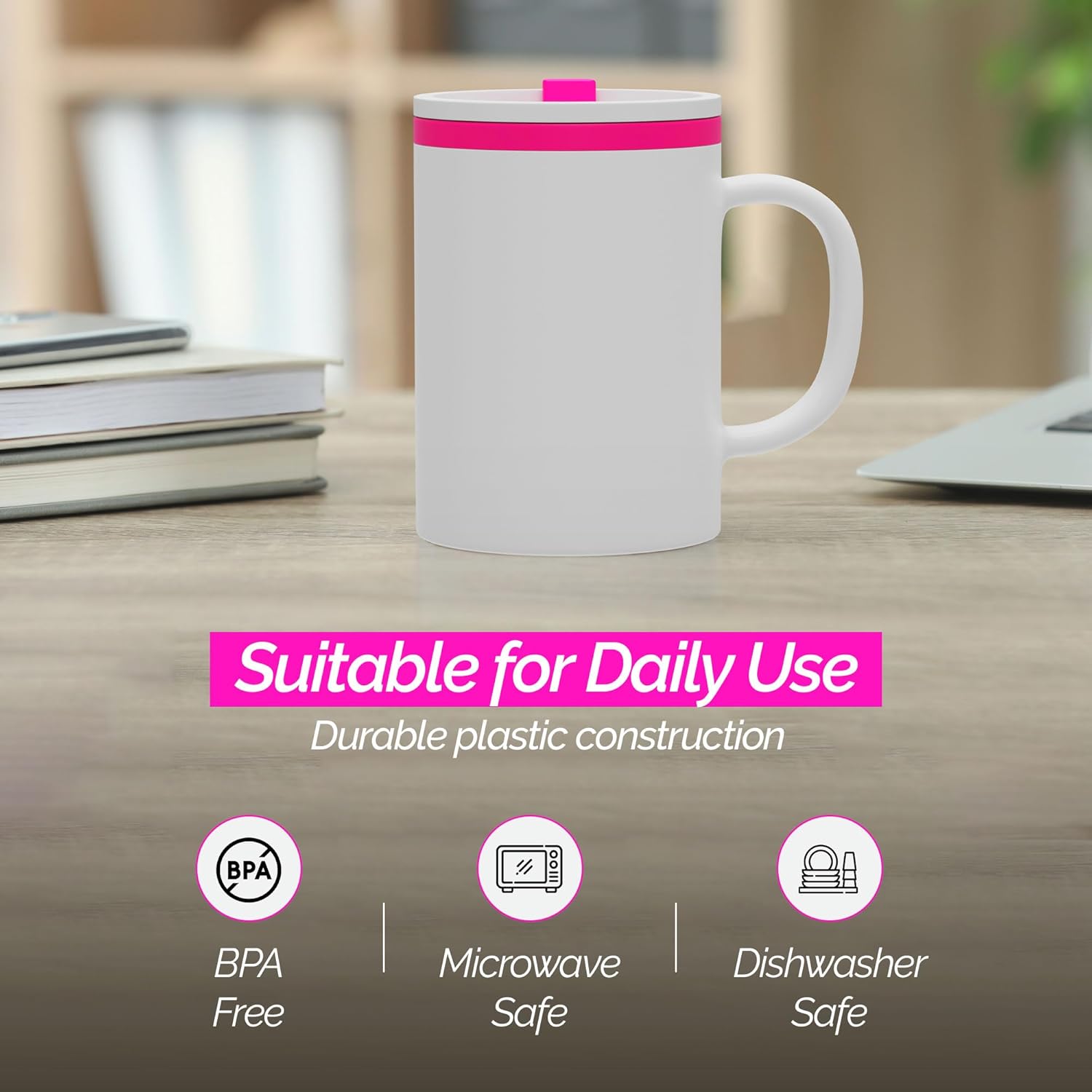 - Easy Cleaning: Made from BPA-free plastic, this desk mug ensures a safe and long-lasting drinking experience. Its durable build is perfect for daily use at the office. Microwave and dishwasher safe, this mug makes cleanup a breeze, ensuring convenience and longevity.