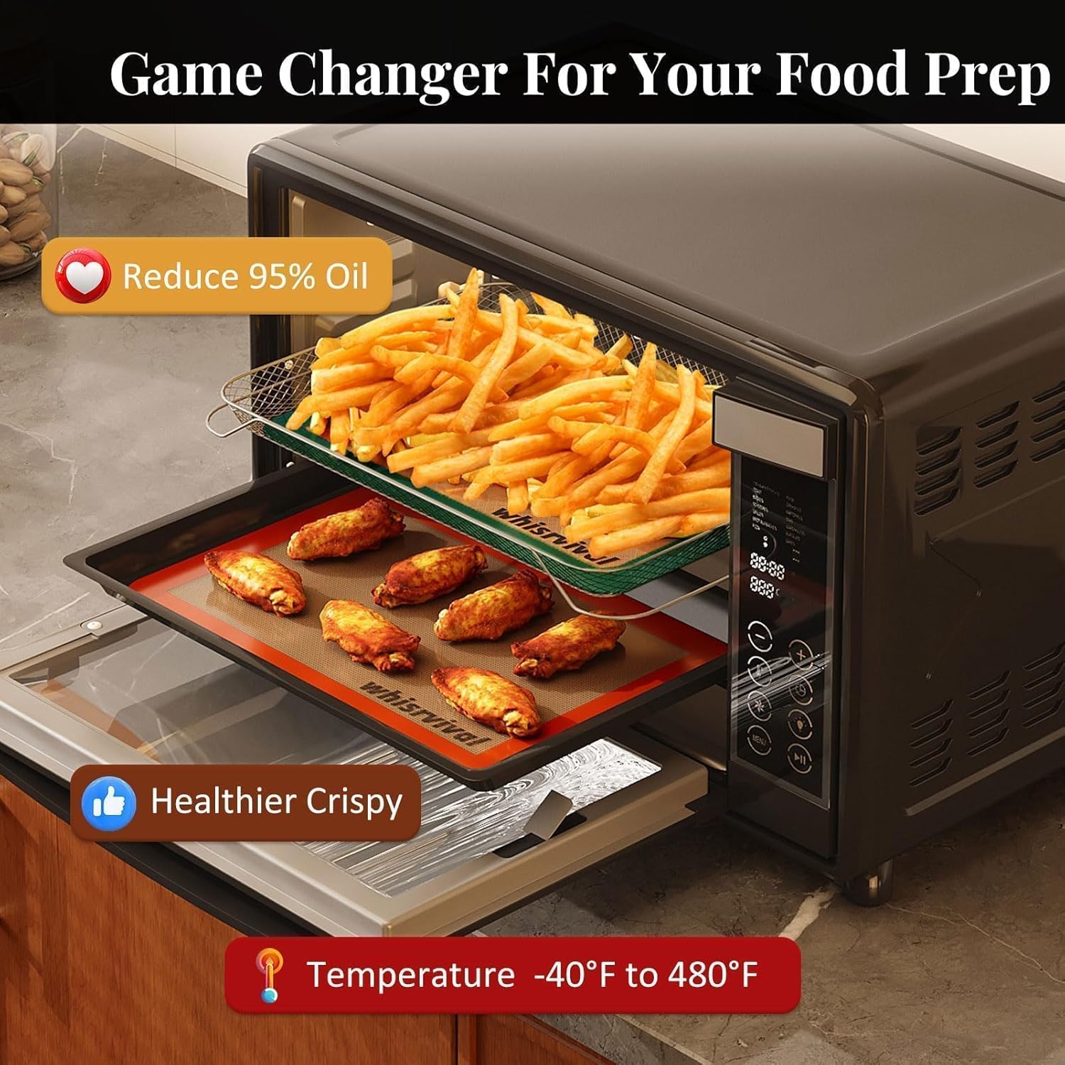 - [2 Colors Half Silicone Baking Mats(16.53 x 11.61 inches)]: whisrvival 2 sets silicone baking mats comes in different colors, perfect for dedicating each silicone mats for baking to specific recipes like cookies, vegetables, or meats. The distinct colors make it easy to keep your flavors separate