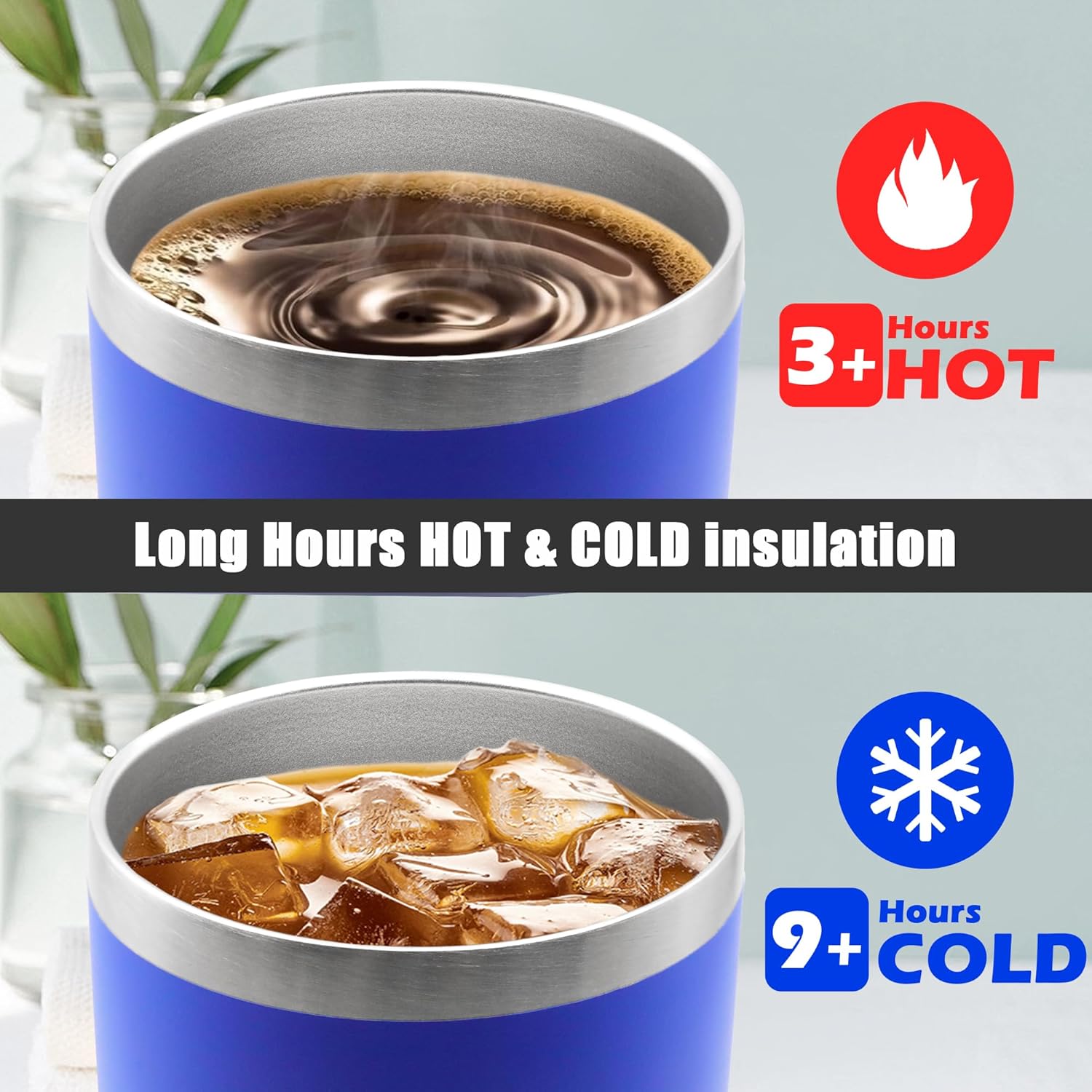 - DOUBLE WALL & VACUUM INSULATION - Thanks to the double wall vacuum insulated, the heat or cold transfer rate from your beverage to the outer wall of the tumbler is slowed down, which allows our tumblers to keep hot for over 3 hours and cool for over 9 hours