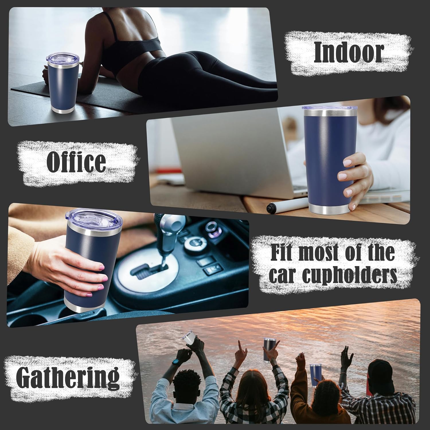 20 oz Tumbler Coffee Tavel Tumblers Bulk with Lid Stainless Steel Double Wall Vacuum Insulated Mug Powder Coated Cups fit Car Cupholder for Hot and Cold - Navy, 8Pack