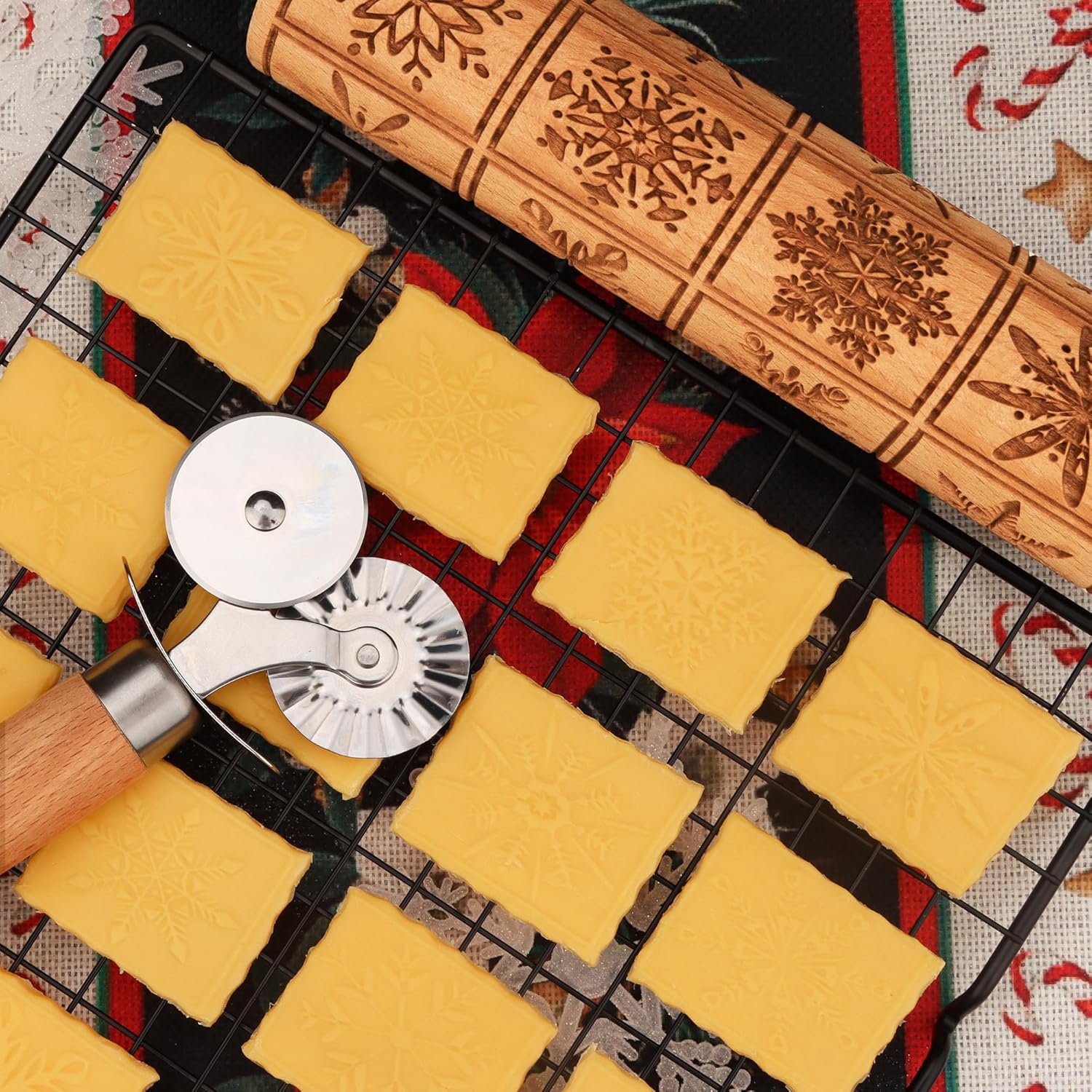- ERGONOMIC HANDLES & DEEP IMPRESSION: Non-slip 3.54" handles ensure control while rolling. The 9.5" engraving zone transfers crisp details onto dough – a must-have rolling pin with design for springerle cookies and festive treats