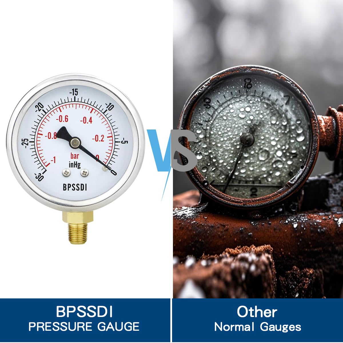 30inHg Vacuum Pressure Gauge, Water Pressure Gauge, 2.5" Dial Size, 1/8" NPT Lower Mount, 304 Stainless Steel Case, for Pneumatic Air Compressor RV Regulator Valve Test(with Tape)