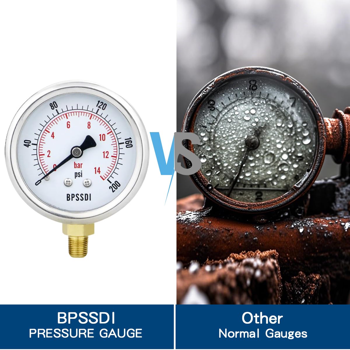 - Rugged and Stable - The pressure gauge is made of brass,304 stainless steel and food-grade silicone seals for higher stability and is used to measure the pressure of non-corrosive liquids and gases.