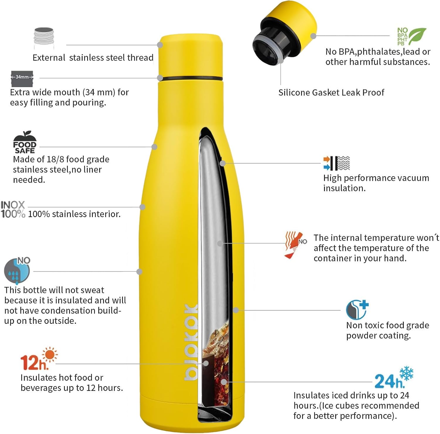 BJPKPK 17oz Insulated Water Bottles Stainless Steel Sports Water Bottles Keep Cold and Hot for Travel Dishwasher Safe,Yellow