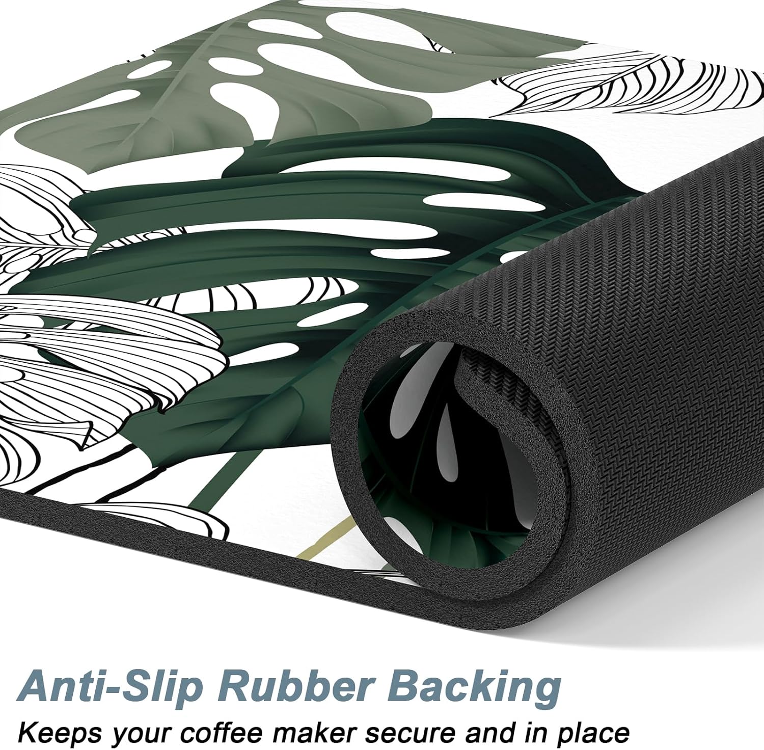 Rnivvi Coffee Mat, 12" x 19" Cute Coffee Bar Mats for Espresso Machine Station Accessories and Organizer, Hide Stain Rubber Backed Absorbent Dish Drying Pad for Kitchen Counter, Tropical Leaves