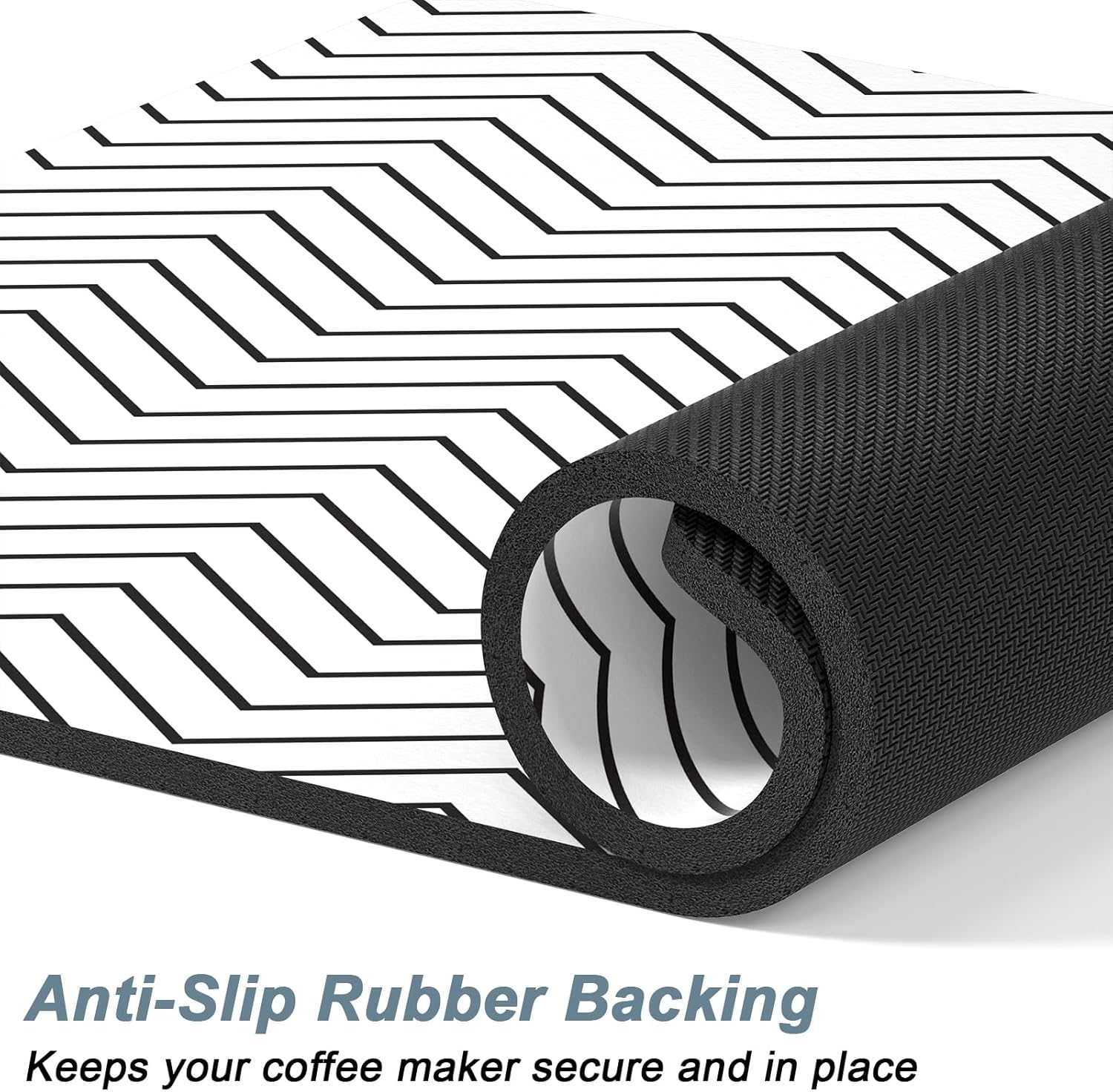 - Super Absorbent and Non-slip: Coffee bar decor mat is crafted from absorbent suede and anti-slip rubber. The surface is soft, heat-proofand and can quickly absorb liquid. The anti-slip rubber backing can firmly grip the floor without unwanted sliding