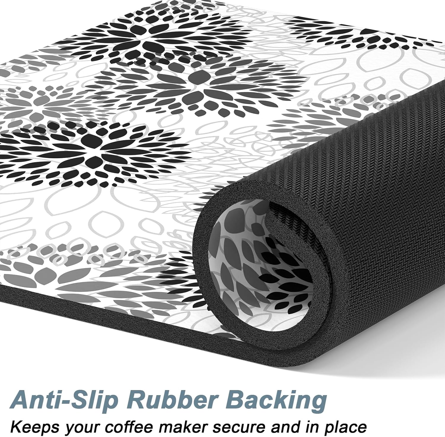 - Super Absorbent and Non-slip: Coffee bar decor mat is crafted from absorbent suede and anti-slip rubber. The surface is soft, heat-proofand and can quickly absorb liquid. The anti-slip rubber backing can firmly grip the floor without unwanted sliding