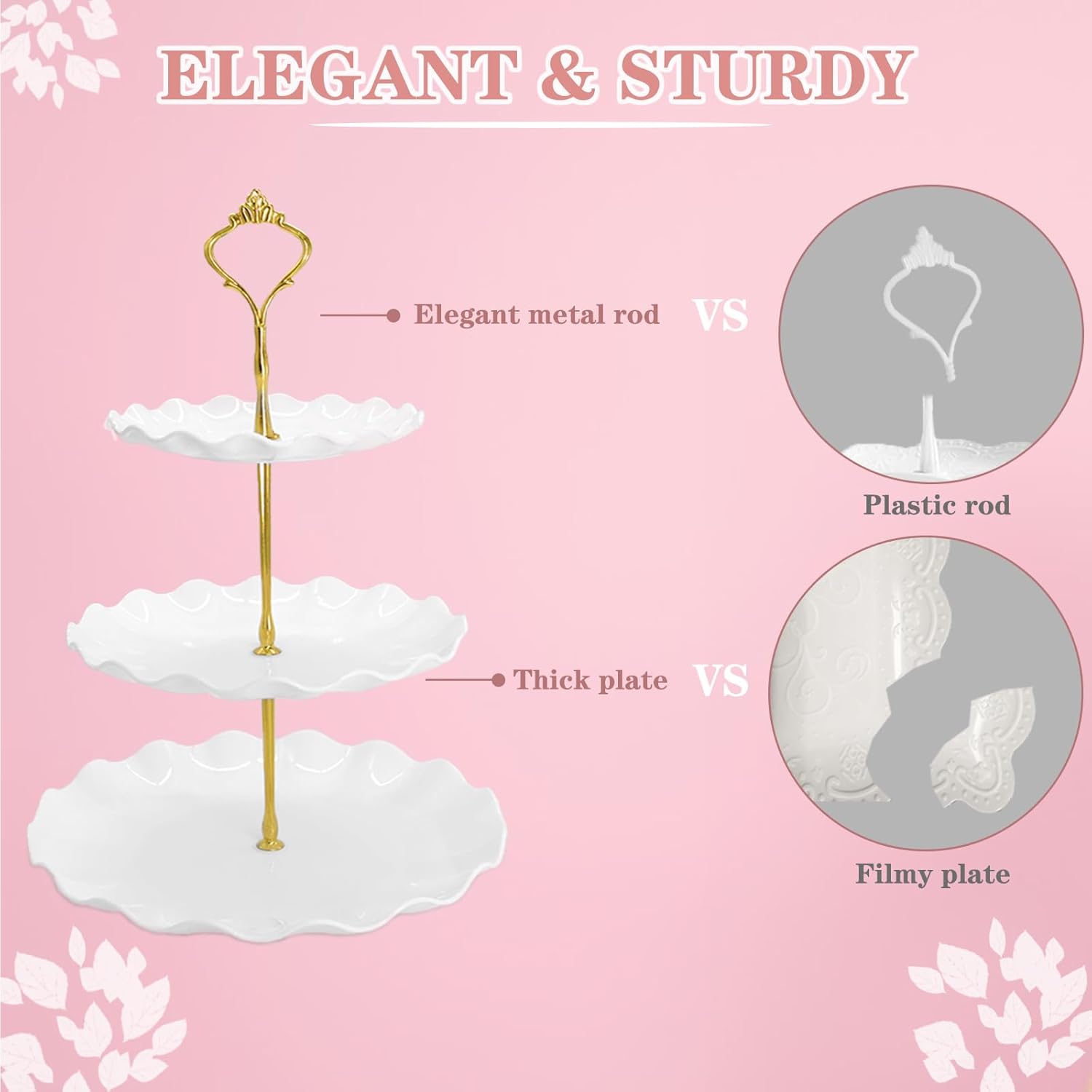 - Elegant Party Decorations: This tiered tray dessert stands set is elegantly designed using texture-filled metal rods with white trays. It is a reliable helper for various events and parties such as tea party, baby shower, birthday party, wedding, graduation, etc. and a beautiful decoration for dessert table or appetizer table.