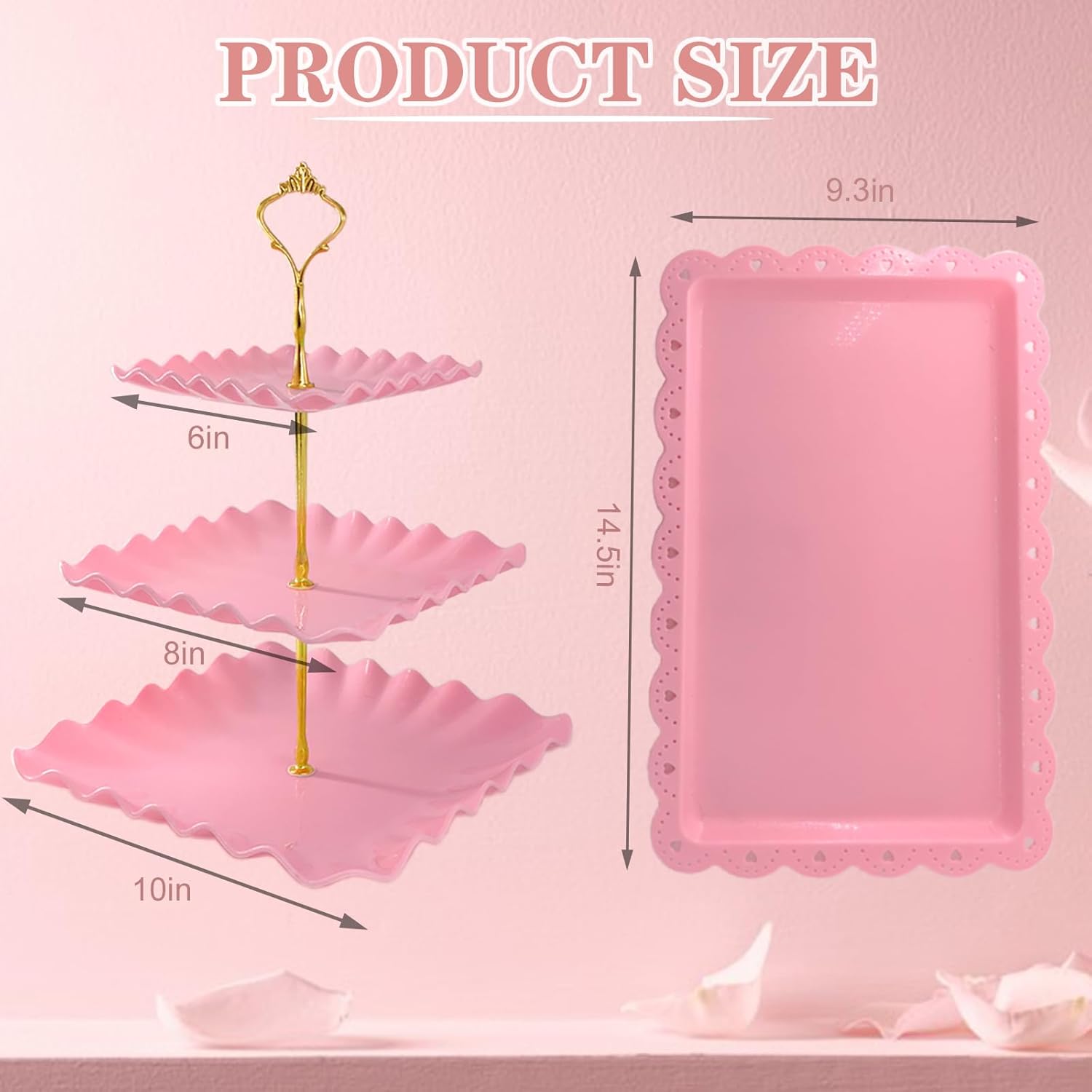 - Elegant Party Decorations: This tiered tray dessert stands set is elegantly designed using texture-filled metal rods with pink trays. It is a reliable helper for various events and parties such as tea party, baby shower, birthday party, wedding, graduation, etc. and a beautiful decoration for dessert table or appetizer table.