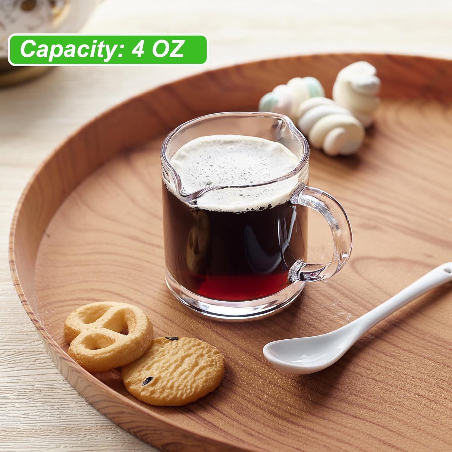 Ackers Clear Espresso Cups Set of 2,4 OZ Double Spouts Cups,Milk Cup with Handle, Espresso Accessories for Machine, Small