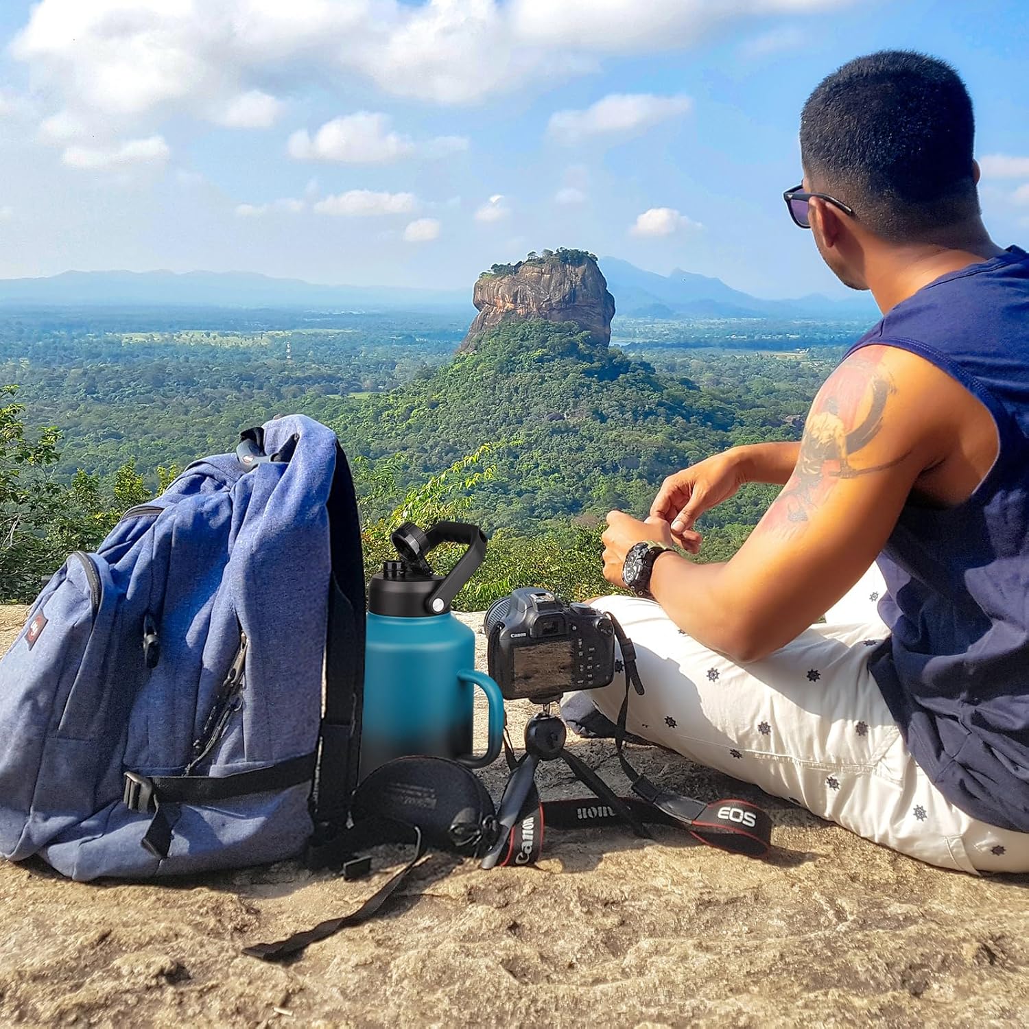 - DISHWASHER SAFE: This large thermos water bottle is easy to keep clean by hand, and it is dishwasher safe. Please wash it thoroughly with a mild dish soap and warm water before your first use.