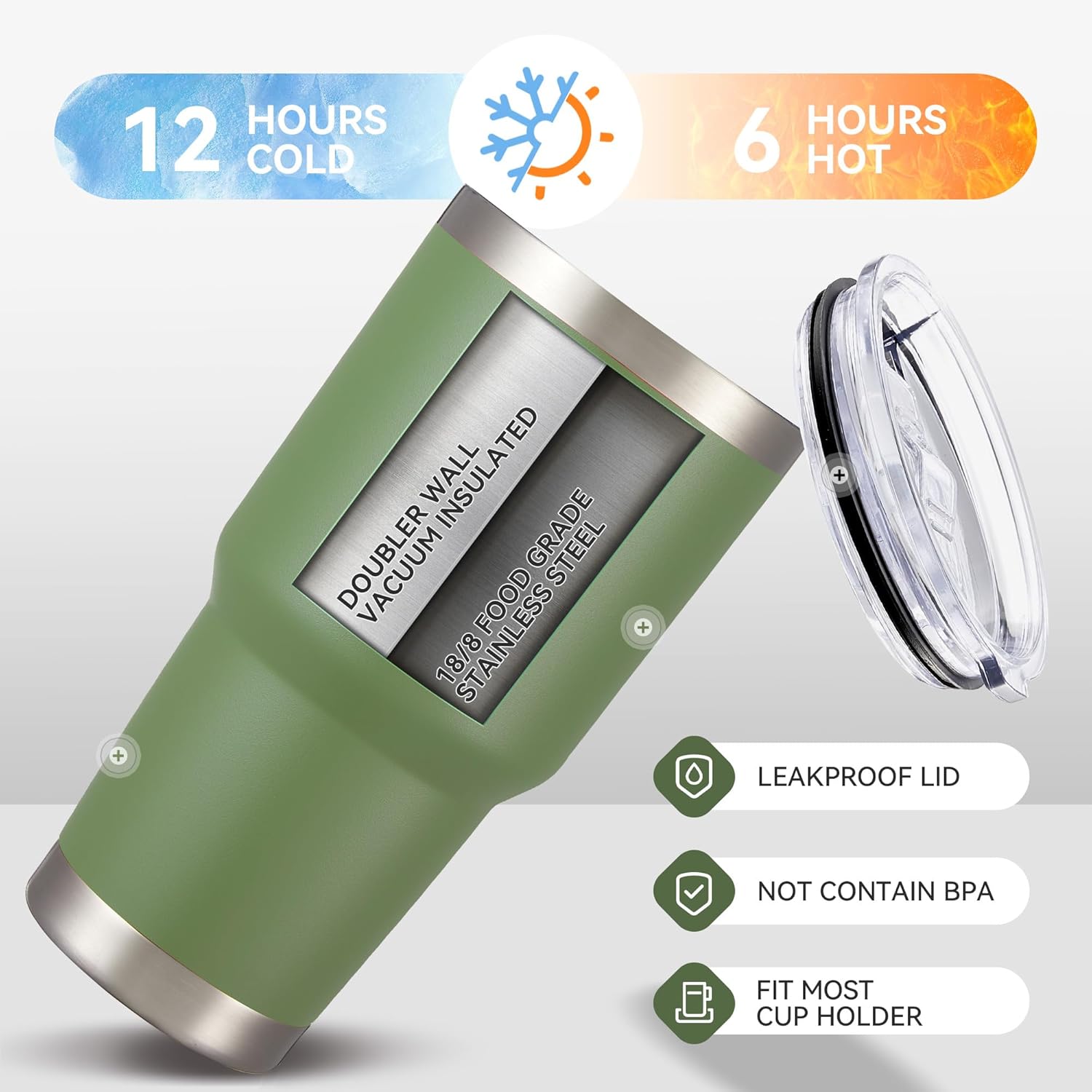 30 oz Tumbler with Lid Stainless Steel Tumblers Bulk Vacuum Insulated Cup Reusable Powder Coated Travel Mug Double Wall Leak Proof Cups Keep Cold Drinks for 12 Hours Army Green, Set of 4