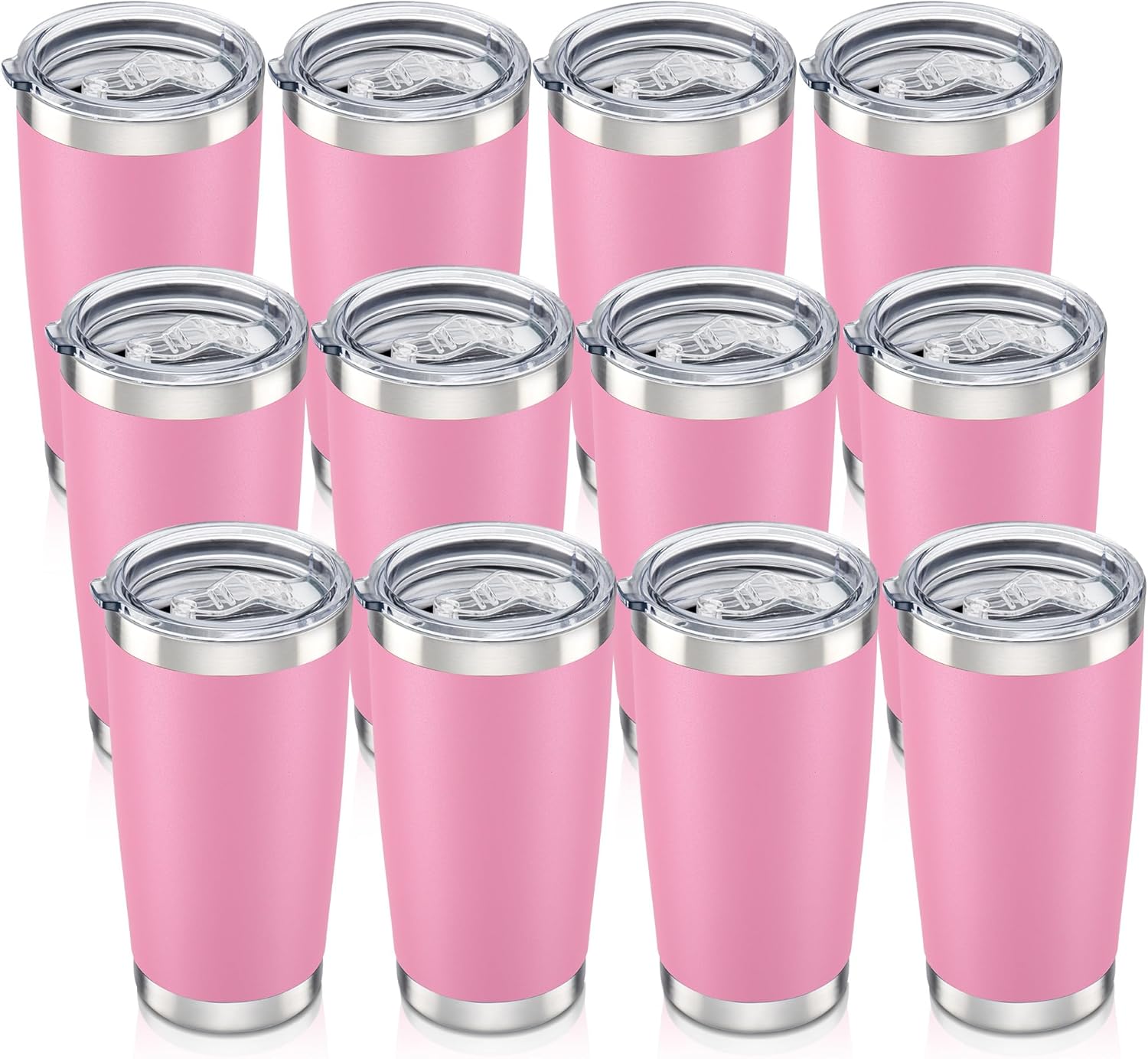 20 oz Tumbler with Lid Stainless Steel Insulated Tumblers Bulk Double Wall Vacuum Cups Powder Coated Travel Mug Keep Drinks Cold and Hot, Pink, 12 Pack