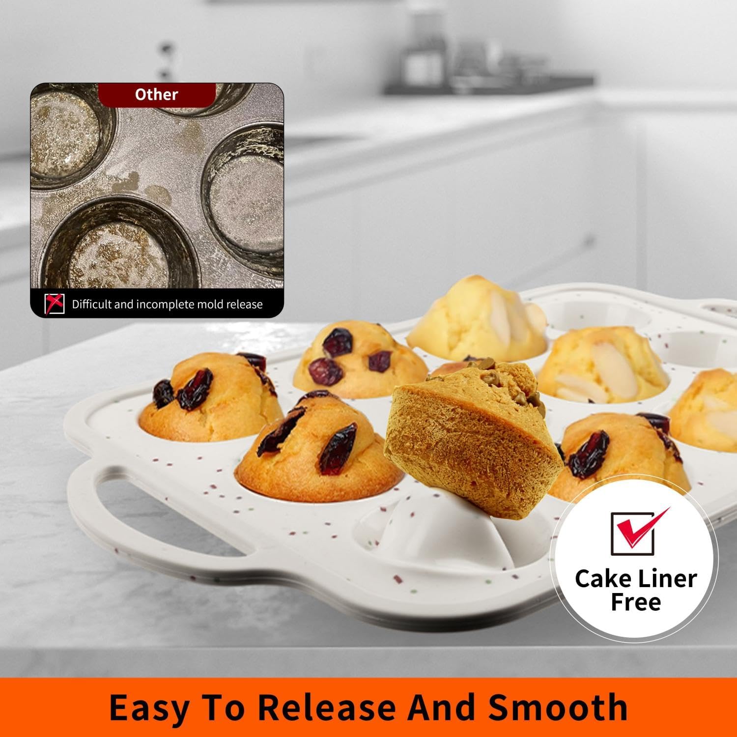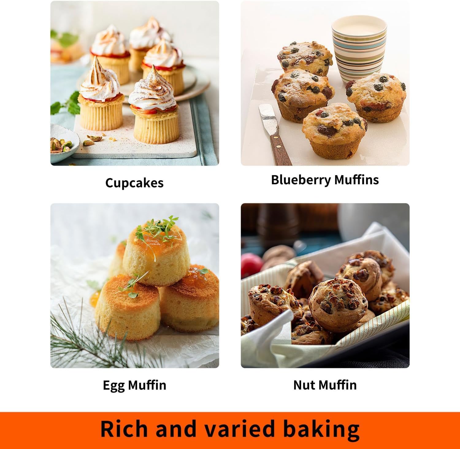 - 【Non-stick & easy to release】High quality silicone material provides a non-stick surface to make your baked goods easy to release, just gently press the bottom of the silicone muffin pan to remove the muffins easily.