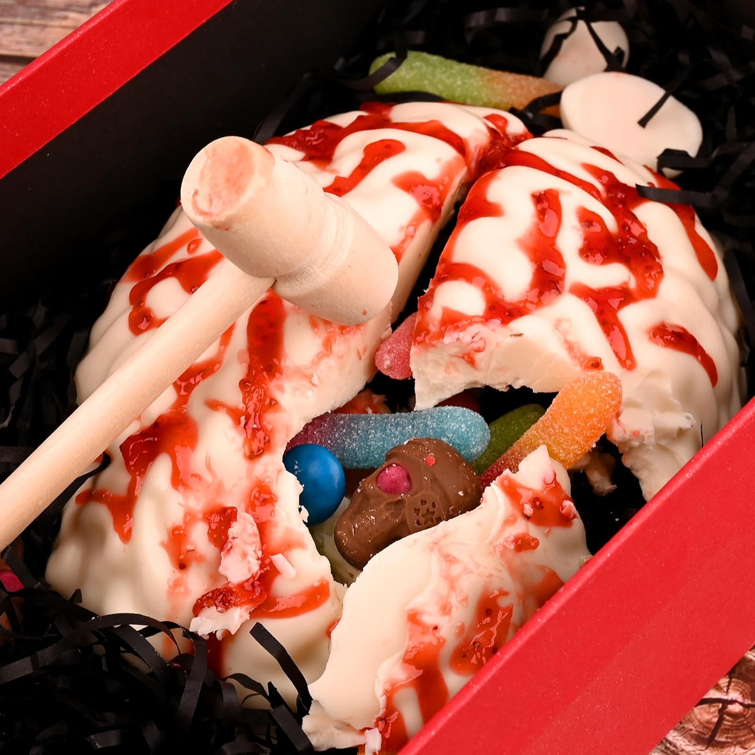 - Lifelike Brain Mold: 2Pcs Silicone molds equipped with 2 wooden hammers. You can put chocolate beans, candies, marshmallows and other inside the chocolate shell of the brain and surprise your family and friends when the chocolate shell is broken with our wooden hammer.