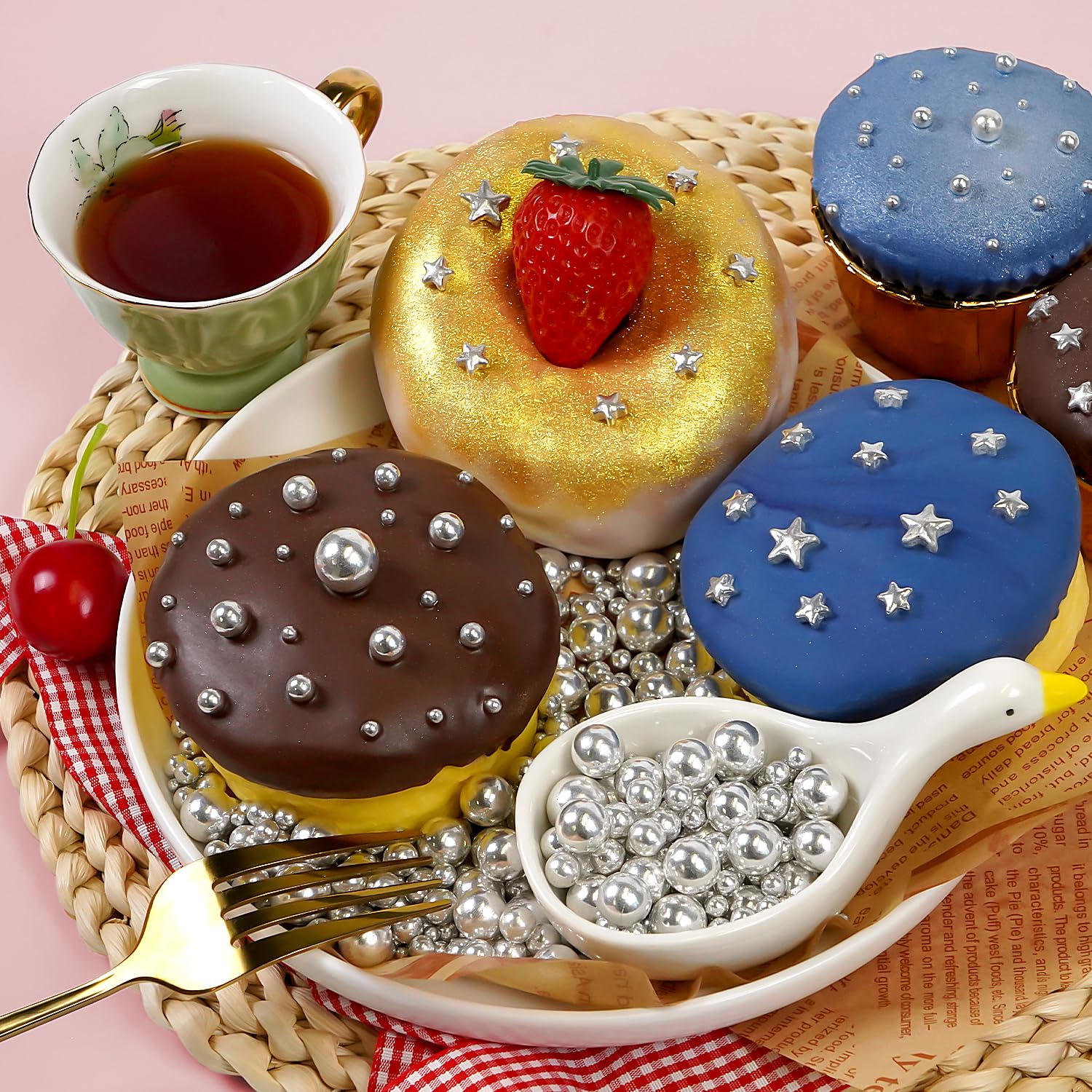 • Great for cake decorating, cookies, cupcake toppers, ice cream, donuts, waffles or milkshake. Silver Pearl Sprinkles make the food more delicate and beautiful. Make your baked goods look more appealing with these silver pearl sprinkles. Metallic Silver Pearl Sprinkles are good for all kinds of festival baking and decorating.