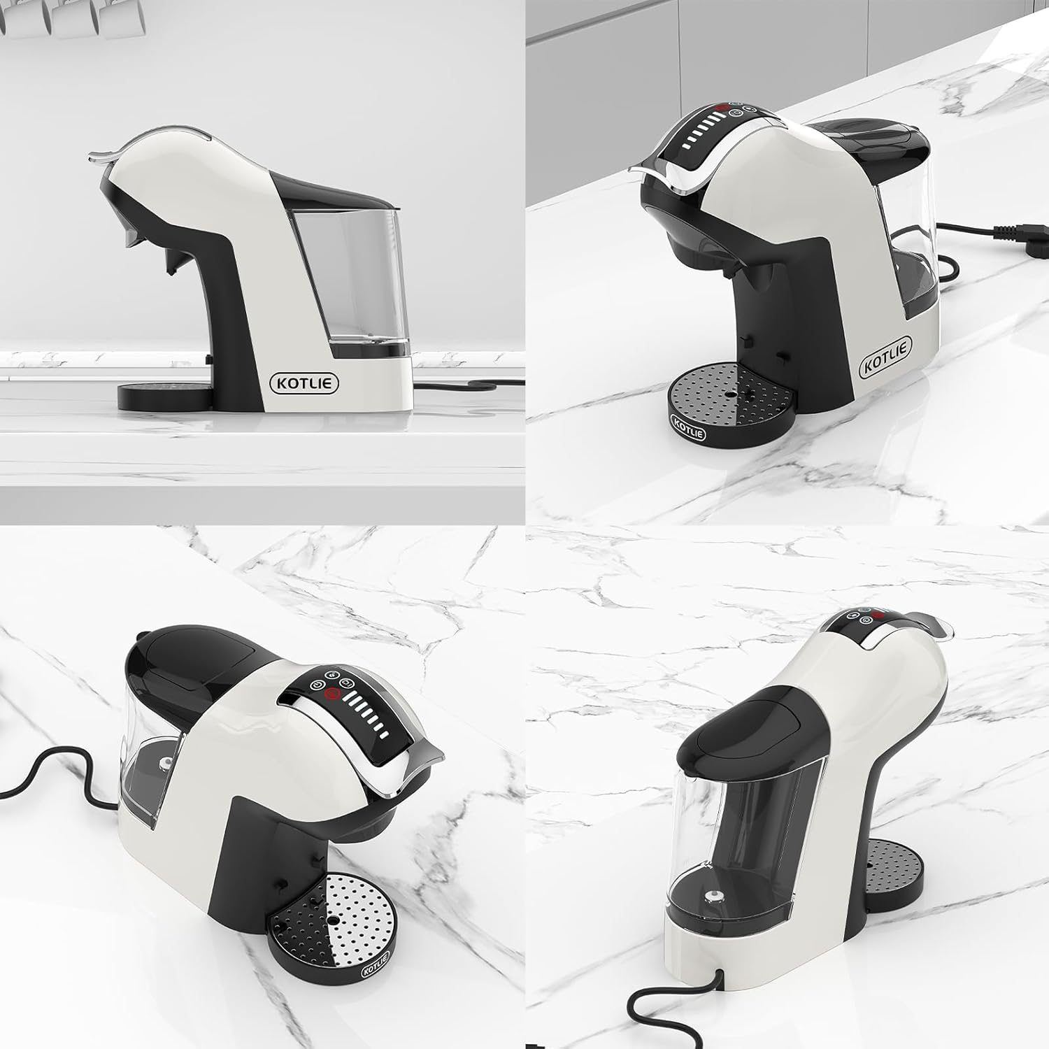 - 【Powerful 5-in-1 Espresso Machine】The Kotlie espresso machine features 19 bar pressure and a 1400-watt rapid heating boiler, allowing you to easily brew a rich crema espresso in just 30 seconds. The KOTLIE EM-308A Italian espresso machine supports various coffee capsules, including Dolce Gusto capsules, Nespresso original capsules (Vertuo capsules not compatible), K-Cup capsules, ground coffee, and ESE (44mm) coffee. Enjoy a variety of flavors with just one coffee machine.