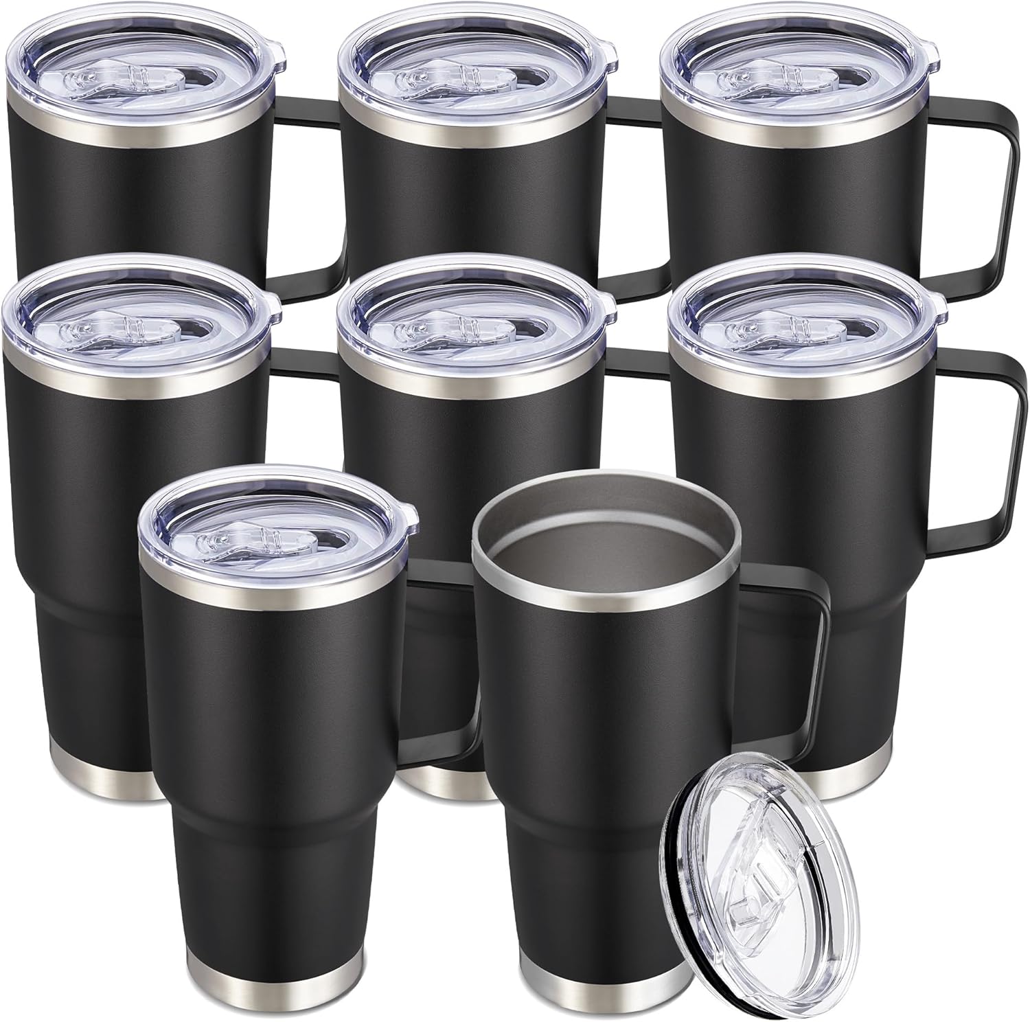 30 oz Tumbler with Handle and Lid, Stainless Steel Tumblers Bulk Double Wall Vacuum Insulated Travel Mug Leak Proof Cup Keep Drinks Cold and Hot Black, 8 Pack