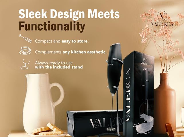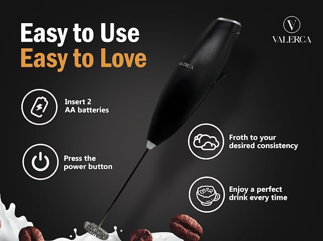 - Compact Design: This electric milk frother has a sleek, handheld design for easy frothing and whisking.