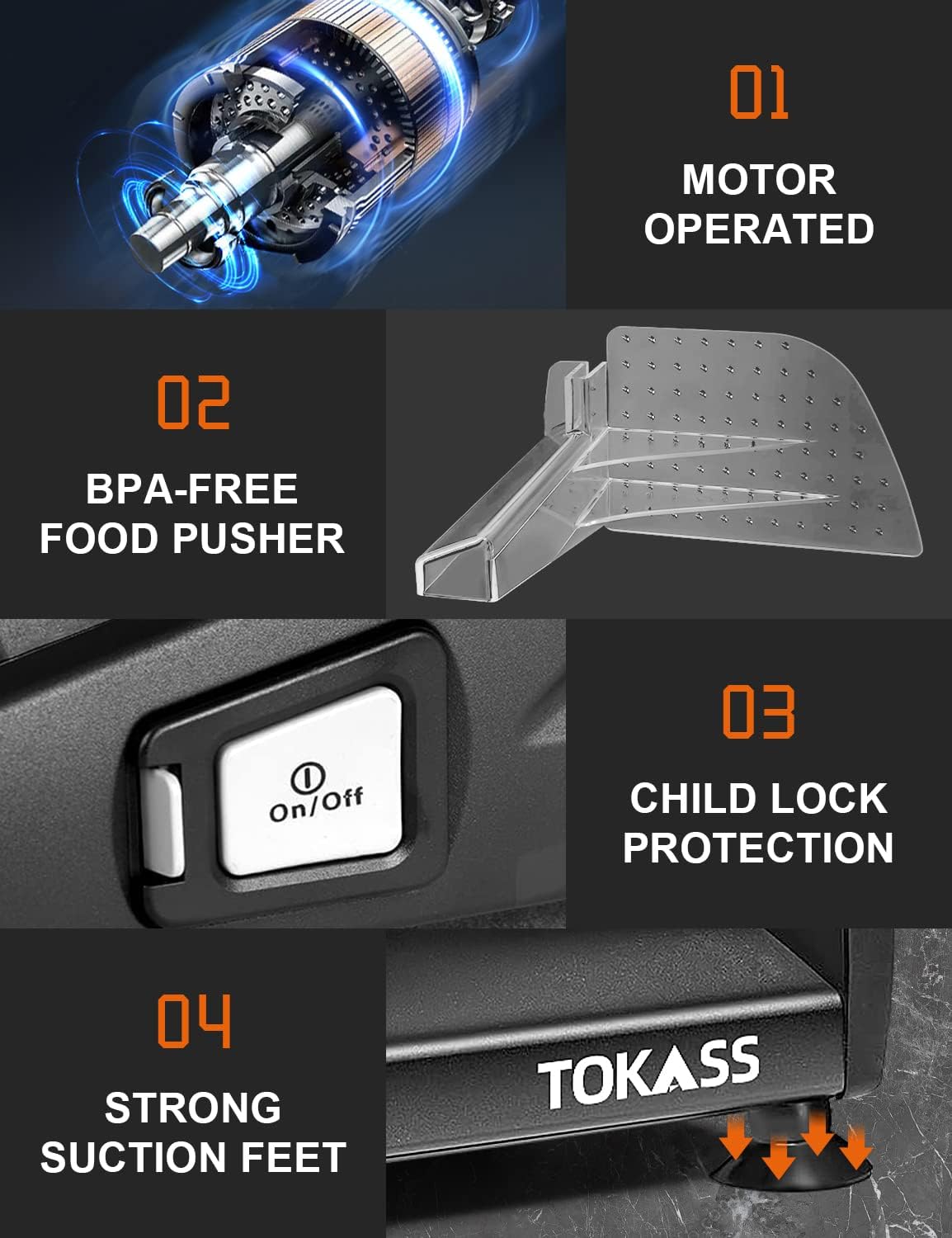 - [200W Powerful Power with Switch Child Lock] - 200W fast, high-yield slice power drive, you must press the safety lock and power button at the same time to start, to avoid misoperation and avoid accidental touch by children. Enough power and speed to cut almost anything. Not just raw meat, but cooked meat, cheese, bread and vegetables.