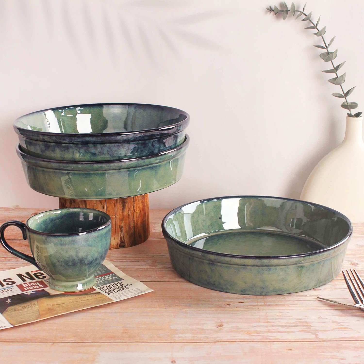 - ELEGANT AND STYLISH DESIGN - This Baking Dish leads the dining trend with its expressive colors and finishes. With its vibrant color palette and captivating finishes, it creates an alluring ambiance that exudes warmth. The eye-catching reactive glazes and rich, vivid hues not only soothe the senses but also elevate your dining experience. The generously-sized plates provide ample space for displaying your delectable creations, while their deep bottoms prevent any sauce from spilling over.