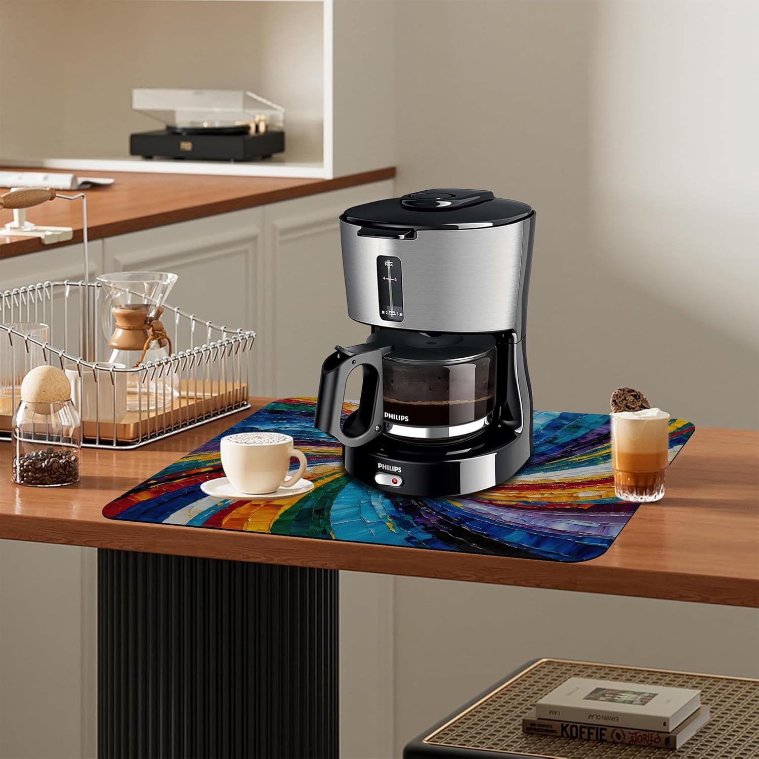 Kitchen Mat Swirl Colorful Textured Dish Drying Mat 16"x24" Bsorbent Coffee Maker Mat for Sink Dishes or Under Rack Kitchen Counter Accessories Absorbent Hide Stain Rubber Backed Dish Drying Pad