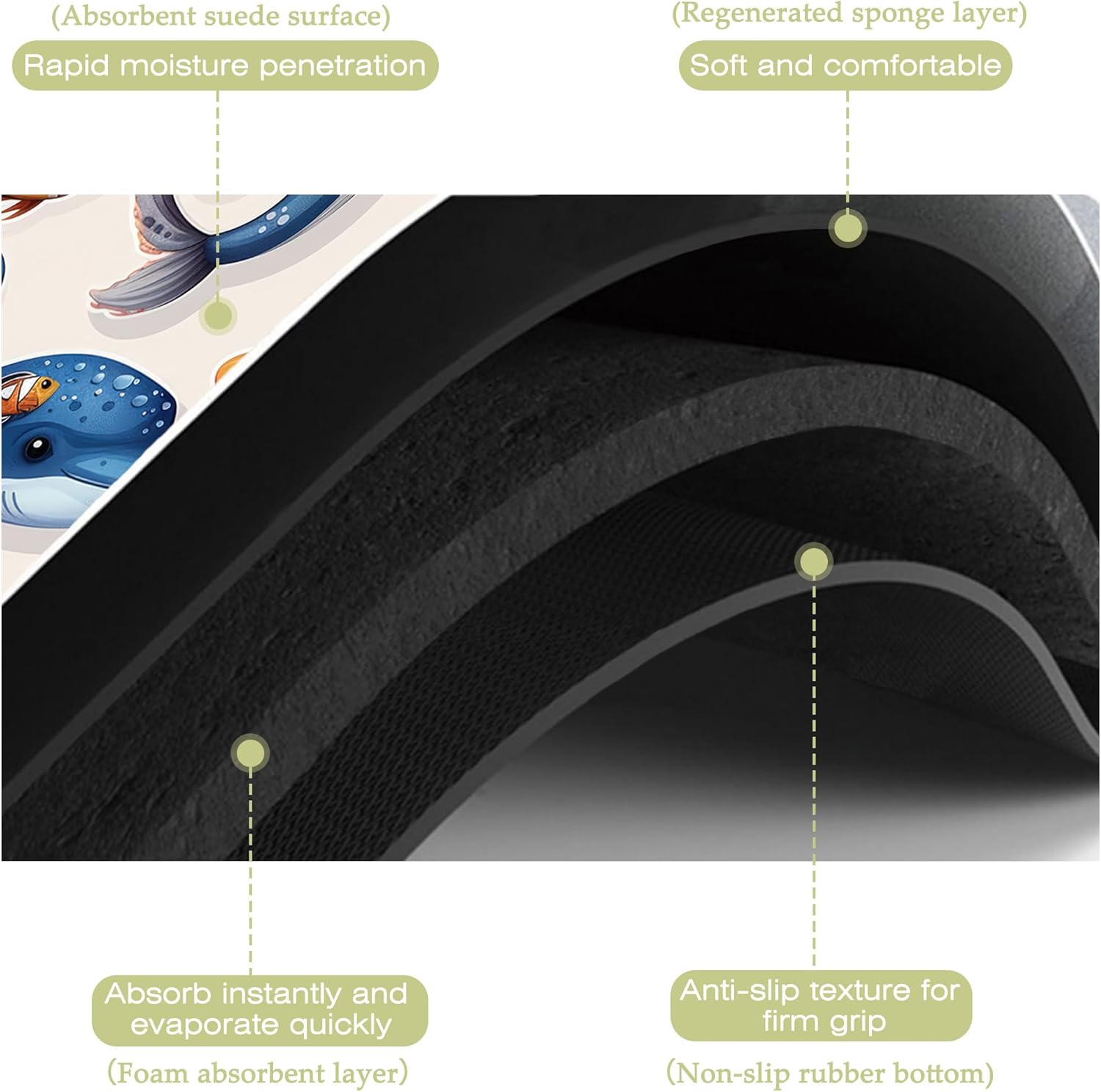 Sea Animals Dish Drying Mat Dolphins Starfish Anemones Kitchen Mat 16"x24" Bsorbent Coffee Maker Mat for Dishes,Utensils Coffee Maker Pots and Pans Easy Clean Dish Slip Resistant Pad
