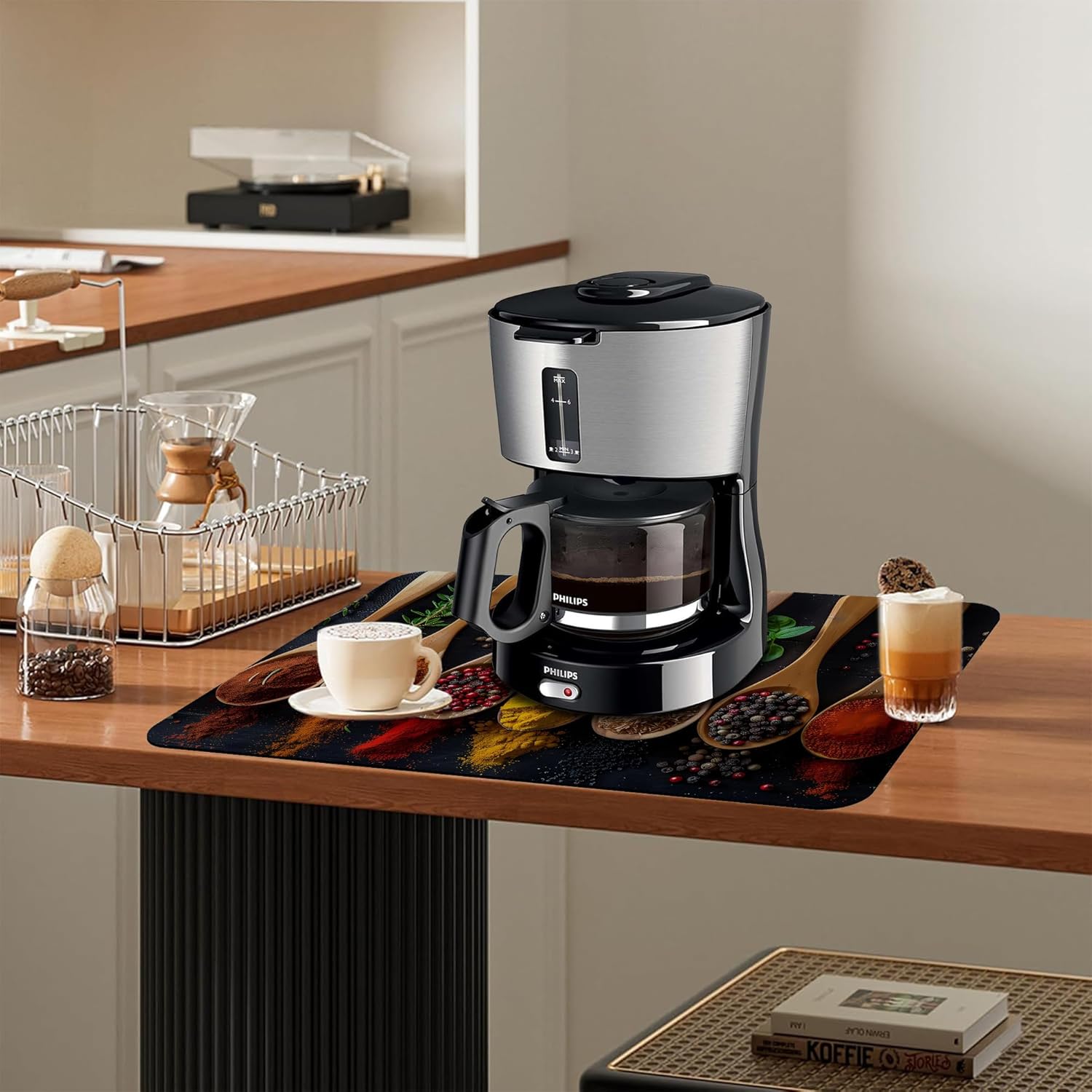 Dish Drying Mat Colorful Spices Herbs Kitchen Mat 12"x19" Bsorbent Coffee Maker Mat for Dishes,Utensils Coffee Maker Pots and Pans Easy Clean Dish Slip Resistant Pad