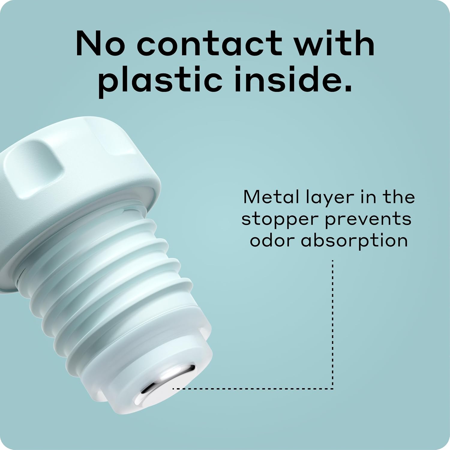 - SAFETY FIRST: 18/8 high grade rust-free stainless steel metal bottle. BPA-free, food-grade steel, food-grade plastic and silicone. Stopper has extra metal layer to prevent odor absorption. Your drink will never touch any plastic