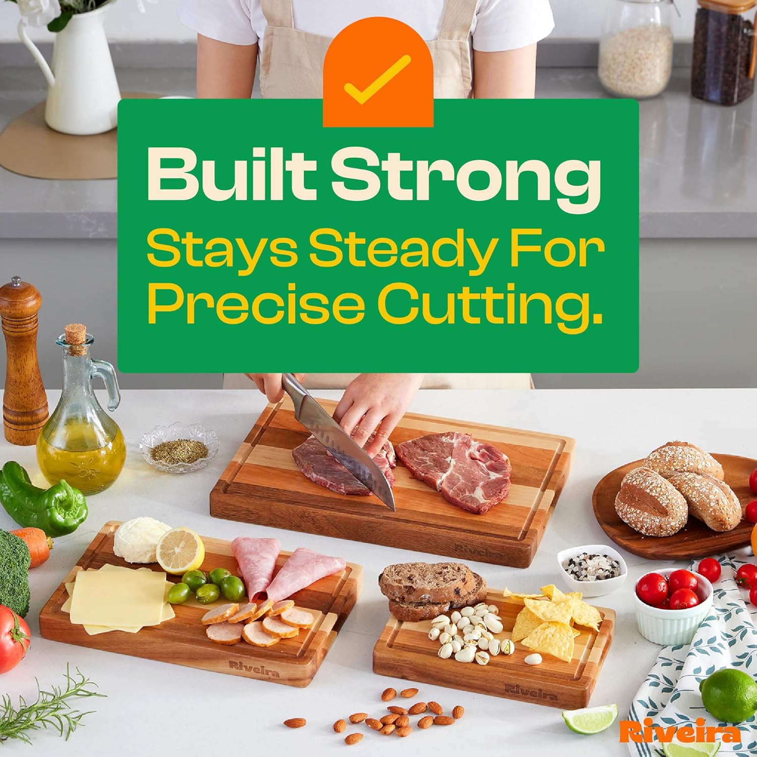 - Premium Crafted Walnut/Cherry/Maple — Take a detour from traditional kitchen aesthetics with wood board crafted from 100% natural wood. Beyond being an unconventional and eco-friendly choice, the chopping board wood proudly showcases the environment friendly and organic wood. This wood cutting boards for kitchen counter adds an unexpected touch of confidence and style to your once-orderly culinary space. Riviera's wooden chopping boards for kitchen will be there for you for many years to come.