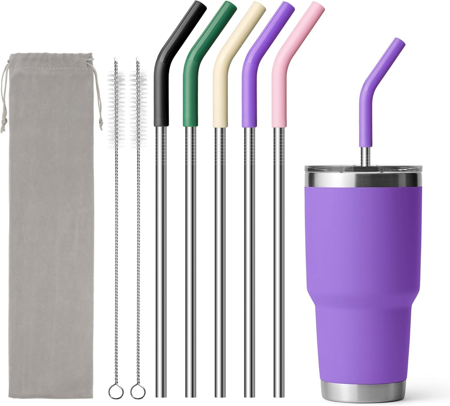 Stainless Steel Straw for 30 oz YETI Tumbler, Metal Straws Reusable with Silicone Tip for Simple Modern 24 oz and 32oz Glass Tumbler, Cleaning Brush, 1 Portable Bag