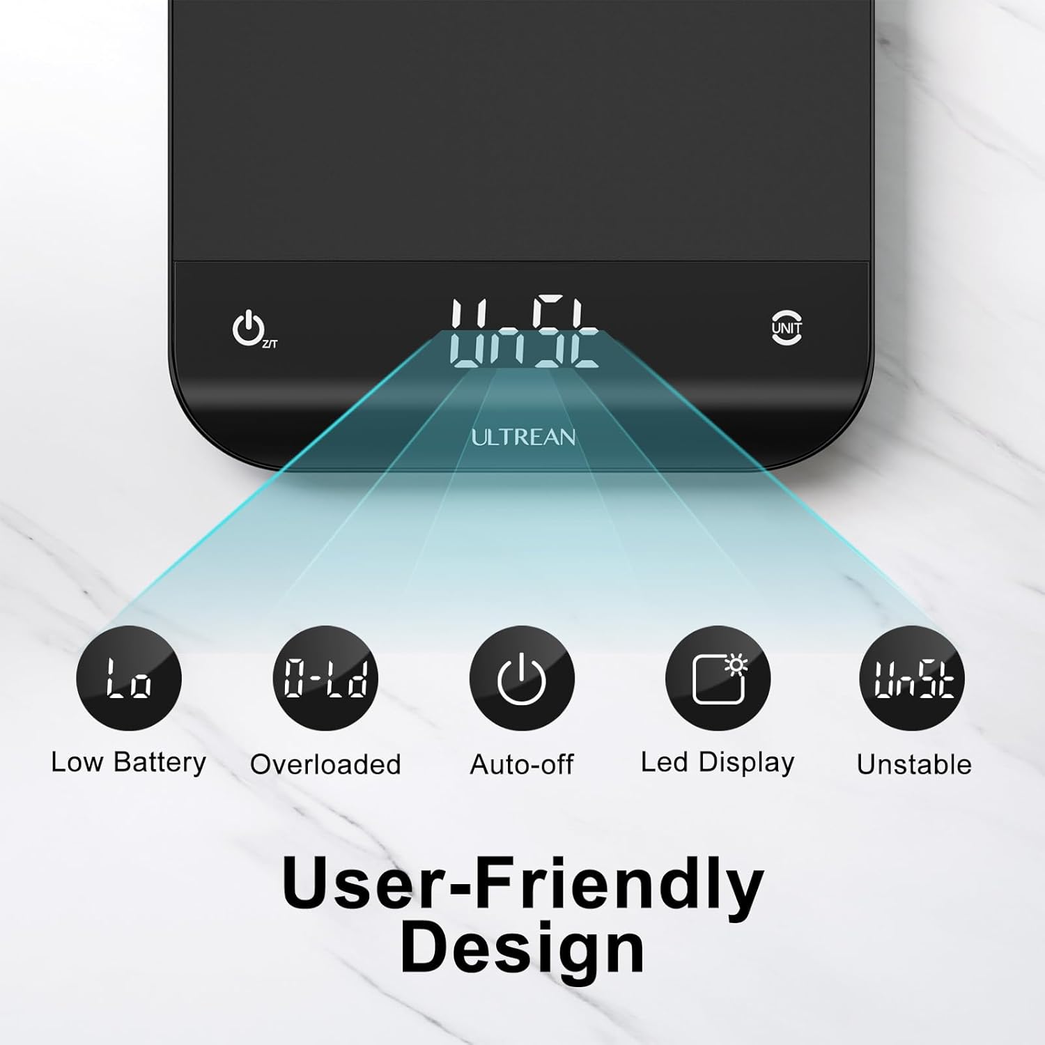 Ultrean Food Scale, Digital Kitchen Scale with LED Display, Weight Grams and Ounces for Baking Cooking, 6 Units with Tare Function, 11lb (Batteries Included)