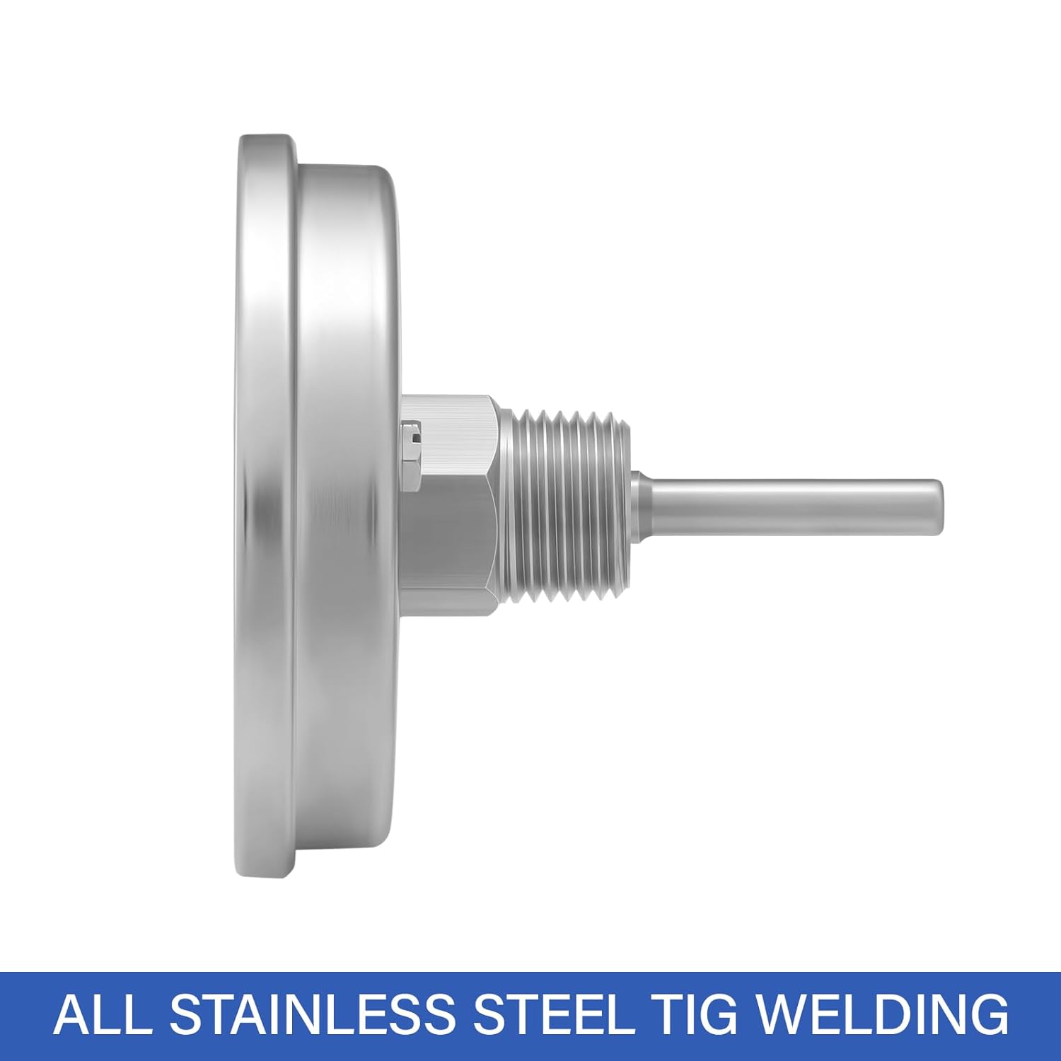 - Precise Temperature Measurement: This bi-metal thermometer features a 3" dial and 2" lead-free brass stem for accurate temperature readings from 32-212°F (0-100°C) with 2% accuracy.
