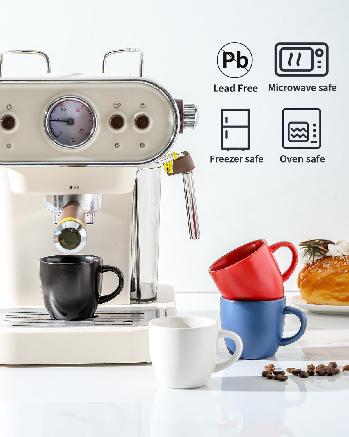 - PREMUIM MATERIAL: Hasense mugs set are made of pro-grade and food-grade porcelain, which is long-lasting for daily use. At the same time, the cute espresso cups are dishwasher and microwave safe. With glossy surface, the espresso cups can clean up well without coffee residue.