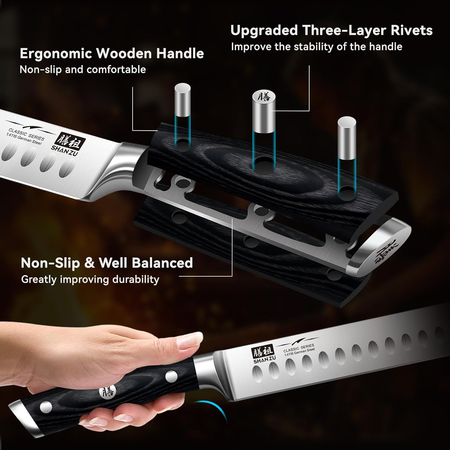 SHAN ZU 12" Slicing Knife - Brisket Slicing Meat Carving Knife Professional German 1.4116 Stainless Steel Razor Sharp Blade, Ergonomic Wood Handle & Full Tang Design, Gift Box Included