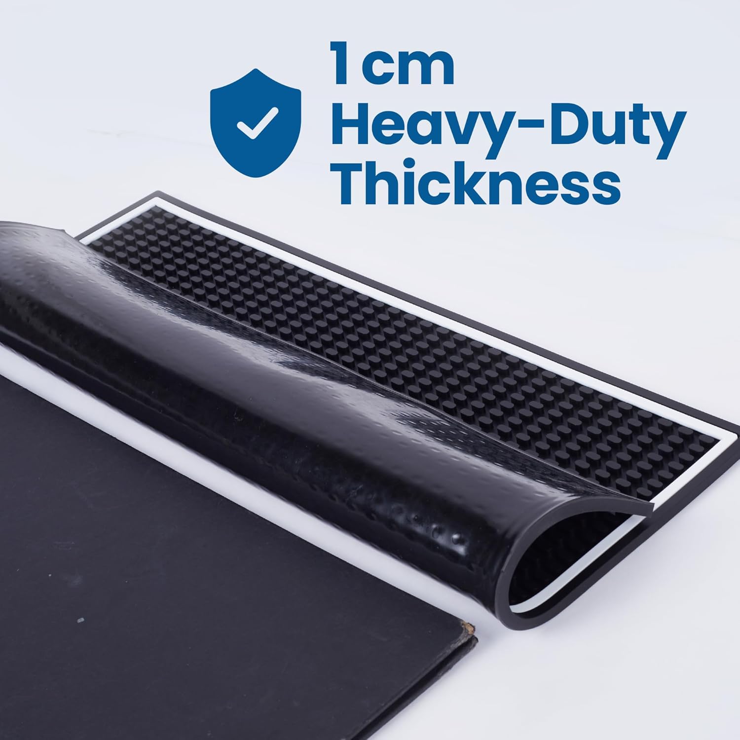 Premium Rubber Bar Mats for Countertop 18" x 12" White Edge Black Bar Mats for Bartending, Bar Service Mat, Home Bar, Coffee Mat Spill Matt (1 Piece)