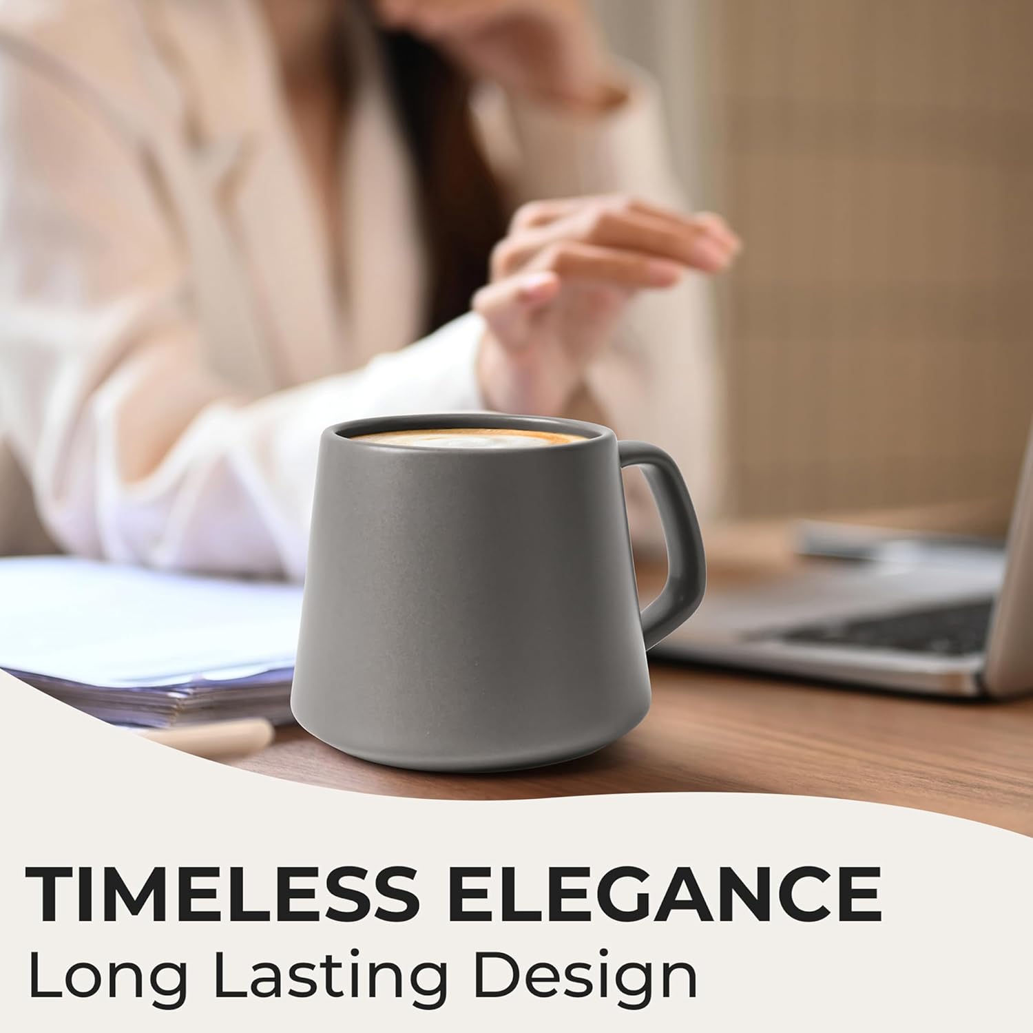 - 𝐂𝐎𝐅𝐅𝐄𝐄 𝐌𝐔𝐆 𝐒𝐄𝐓 – The MIAMIO coffee cups set includes 4 high-quality stoneware cups. Each coffee mug has a generous capacity of 14 oz, offering ample space for your favorite beverage, whether it's cappuccino, tea, mocha, or latte macchiato. These cups are perfect for serving coffee for four people.