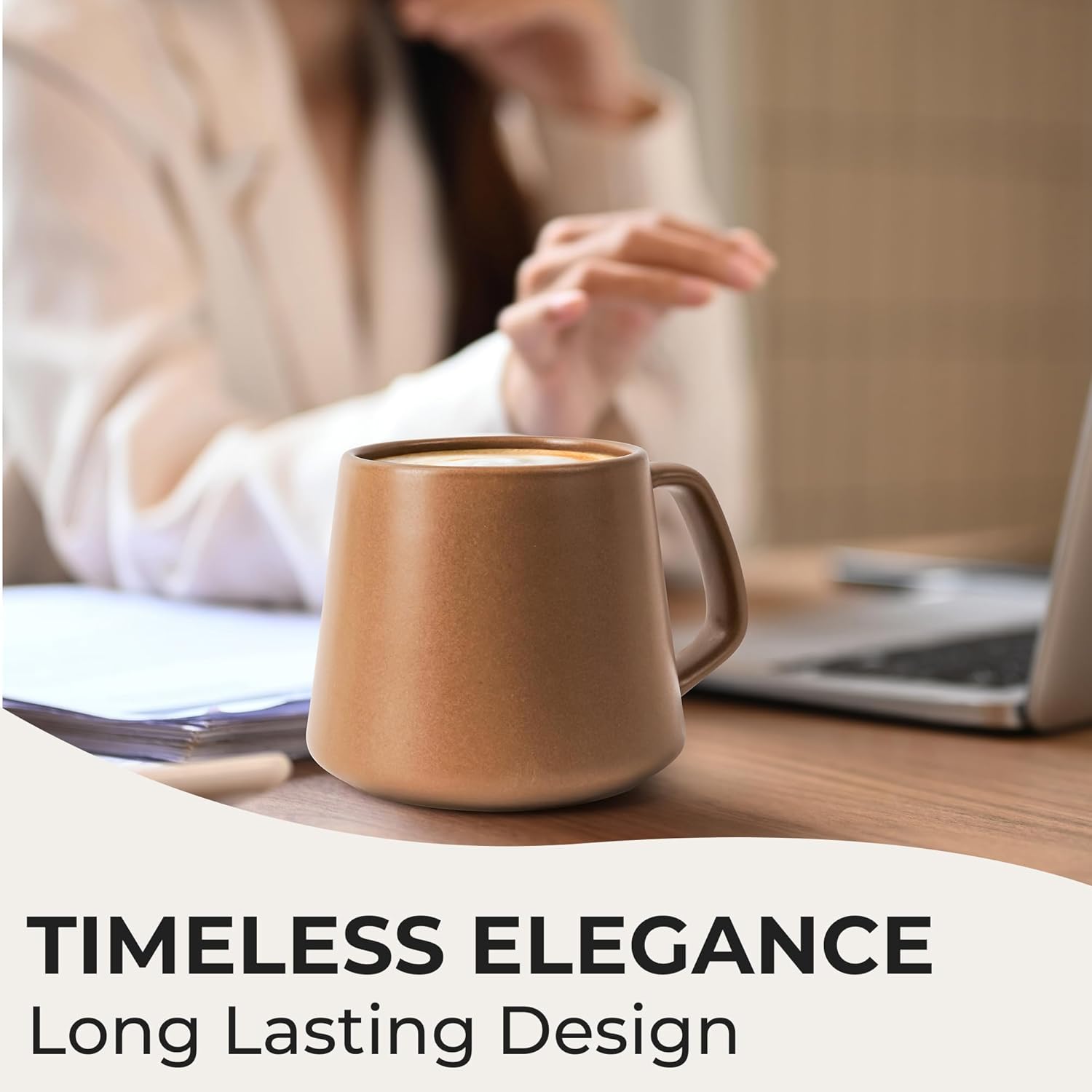 - 𝐂𝐎𝐅𝐅𝐄𝐄 𝐌𝐔𝐆 𝐒𝐄𝐓 – The MIAMIO coffee cups set includes 4 high-quality stoneware cups. Each coffee mug has a generous capacity of 14 oz, offering ample space for your favorite beverage, whether it's cappuccino, tea, mocha, or latte macchiato. These cups are perfect for serving coffee for four people.