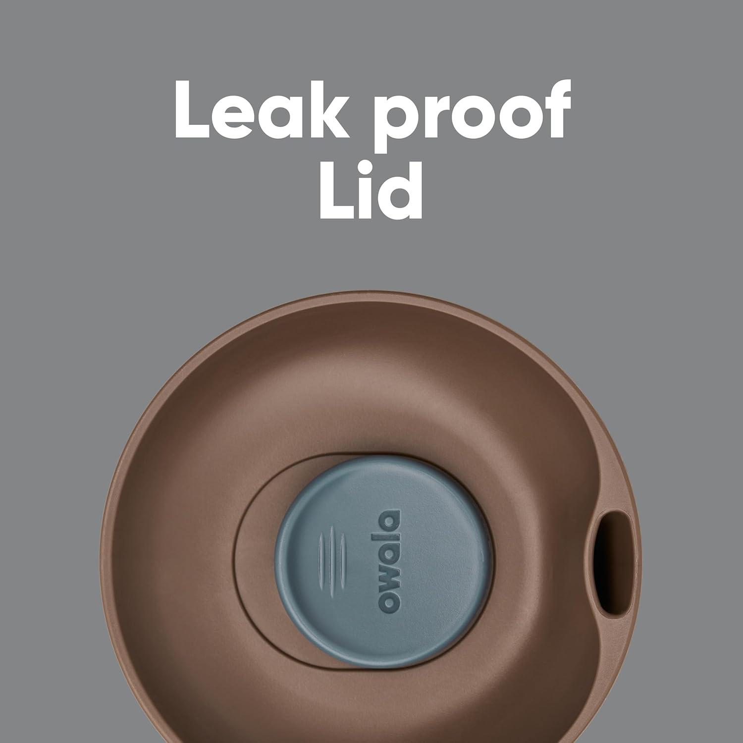Owala SmoothSip Slider Insulated Stainless Steel Coffee Tumbler, Reusable Iced Coffee Cup, Hot Coffee Travel Mug, BPA Free 12 oz, Grey/Brown (Cozy Cocoa)