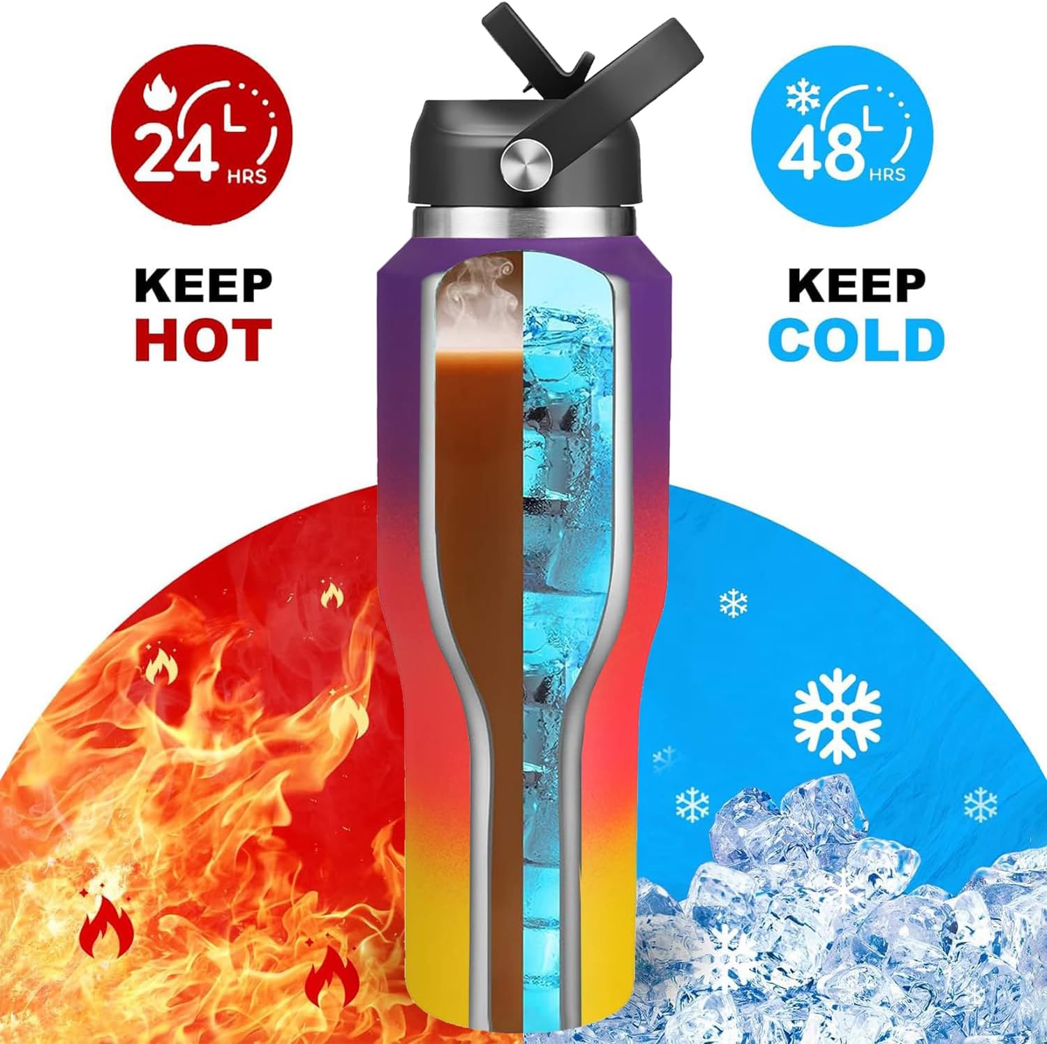 - 【NEW DESIGNED STYLE BOTTLE】 SENDESTAR 40oz water bottle W/slim outline is designed new,the largest vacuum capacity thermos flask can fit in any standard cupholder,perfect for outdoor activities especially for driving,field trip,beach,camping,cycling,etc