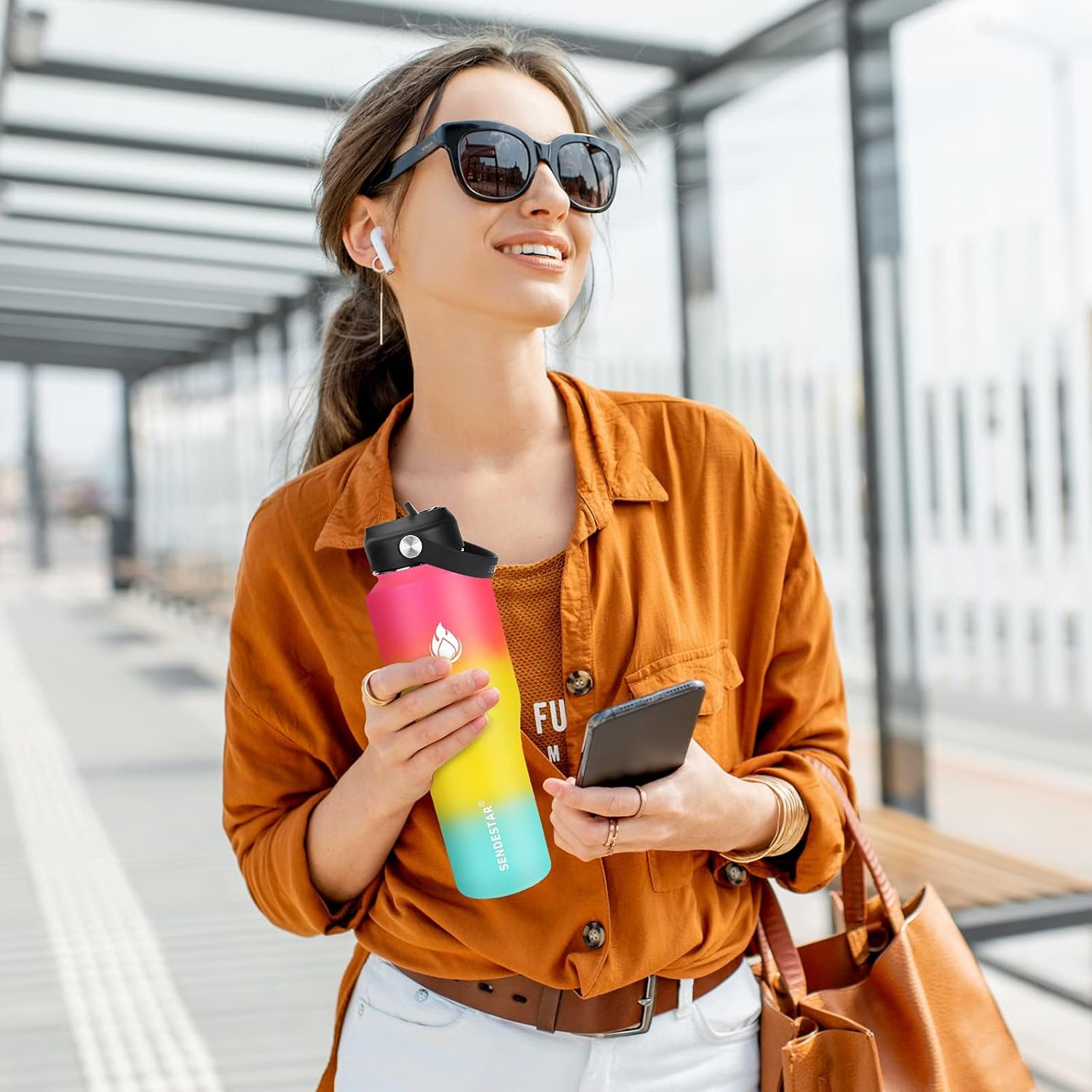 - 【FUNCTIONAL DESIGN】40oz(1128ml)insulated water bottle fit any standard car cup holder comes with The non-slip layer of Powder Coating ensures you hang on to your bottle during a work out, hike or yoga.Various colors SENDESTAR is good for people of all ages and perfect companion for all activities.