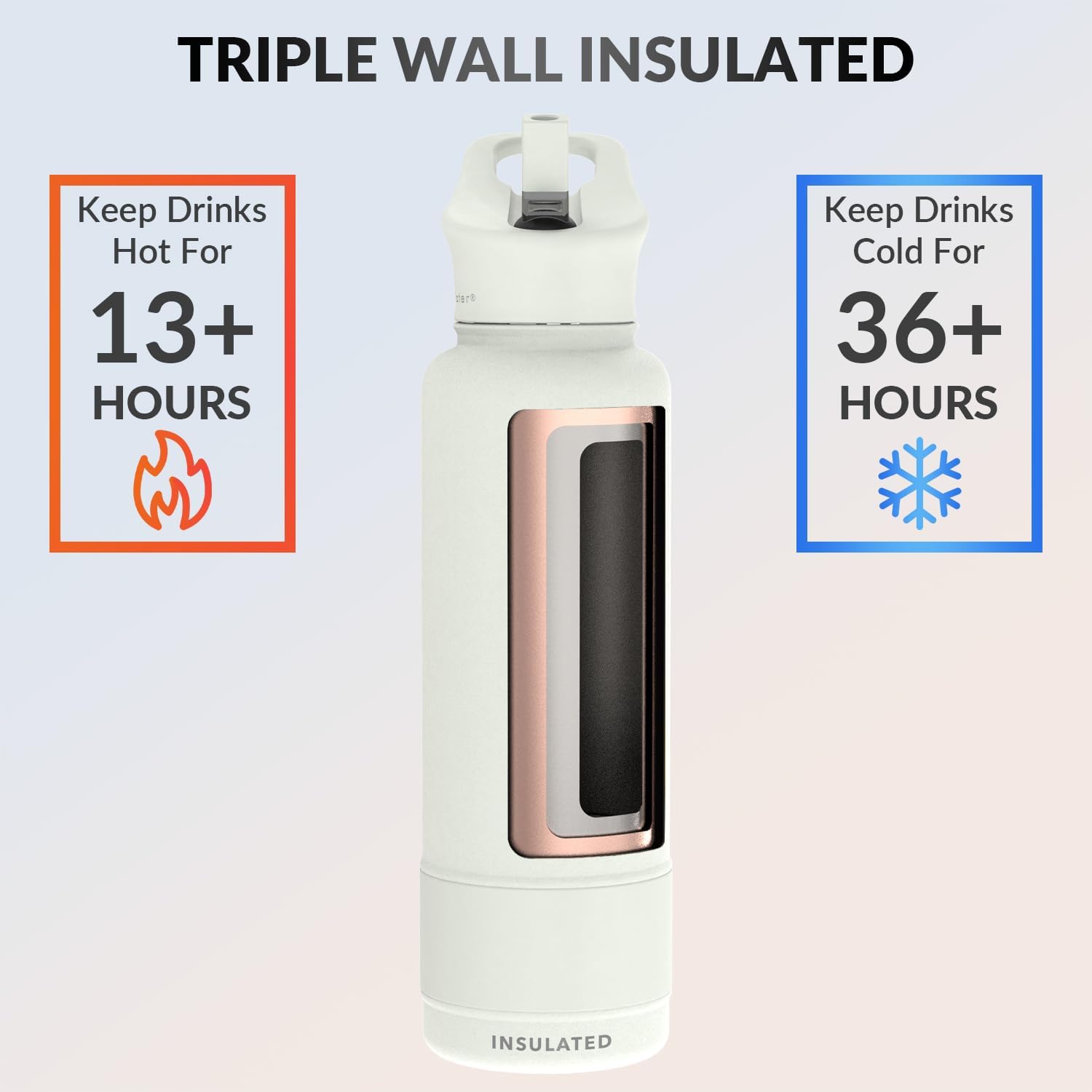 - 𝐀𝐃𝐕𝐀𝐍𝐂𝐄𝐃 𝐈𝐍𝐒𝐔𝐋𝐀𝐓𝐈𝐎𝐍 𝐓𝐄𝐂𝐇𝐍𝐎𝐋𝐎𝐆𝐘: Coldest reusable water bottles are your solution to tepid sips. With the world's first fully insulated straw lid, this bottle keeps your drink cold for 36+ hours and hot for 13+ hours, ensuring your drink stays at the perfect temperature throughout the day. Cold-tested against 50+ leading brands, its superior performance guarantees an unmatched experience. Upgrade now to the Coldest Water Bottle and bid farewell to temperature woes.