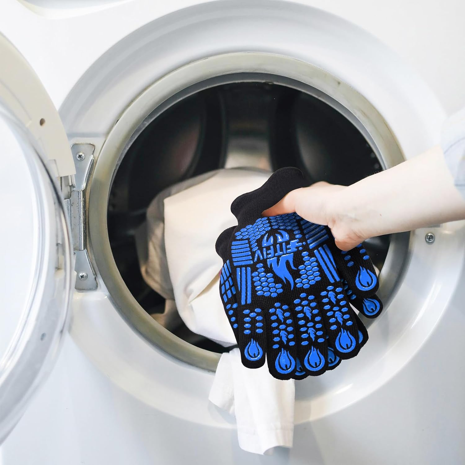 BBQ Gloves, Oven Gloves, Extreme Heat Resistant Barbecue Gloves, Silicone Non-Slip Oven Mitts, Kitchen Gloves for Cooking, Grilling, and Baking (Blue)