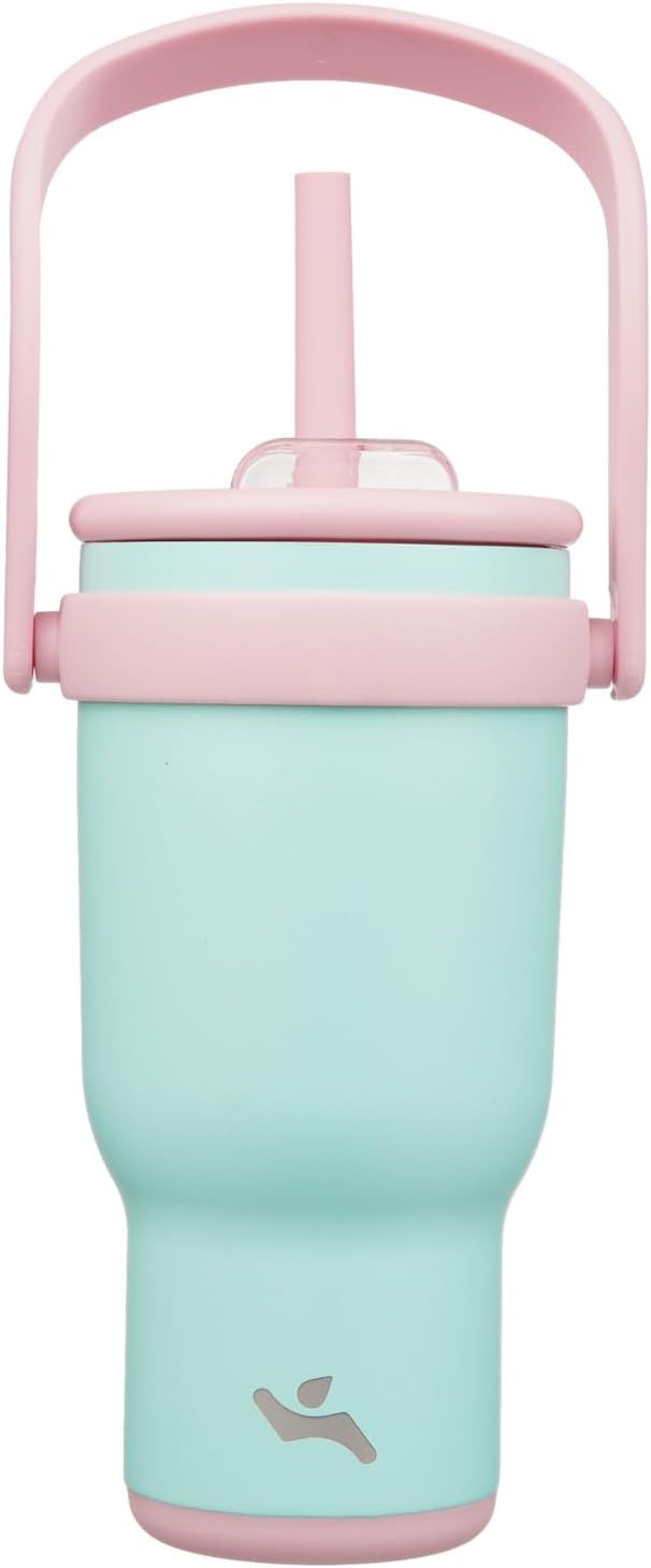 30 oz Tumbler with Side Handle, Insulated Water Bottle with Straw and 2 in 1 Lid, Stainless Steel Cup Travel Coffee Mug for Sports Office Gym,Guava