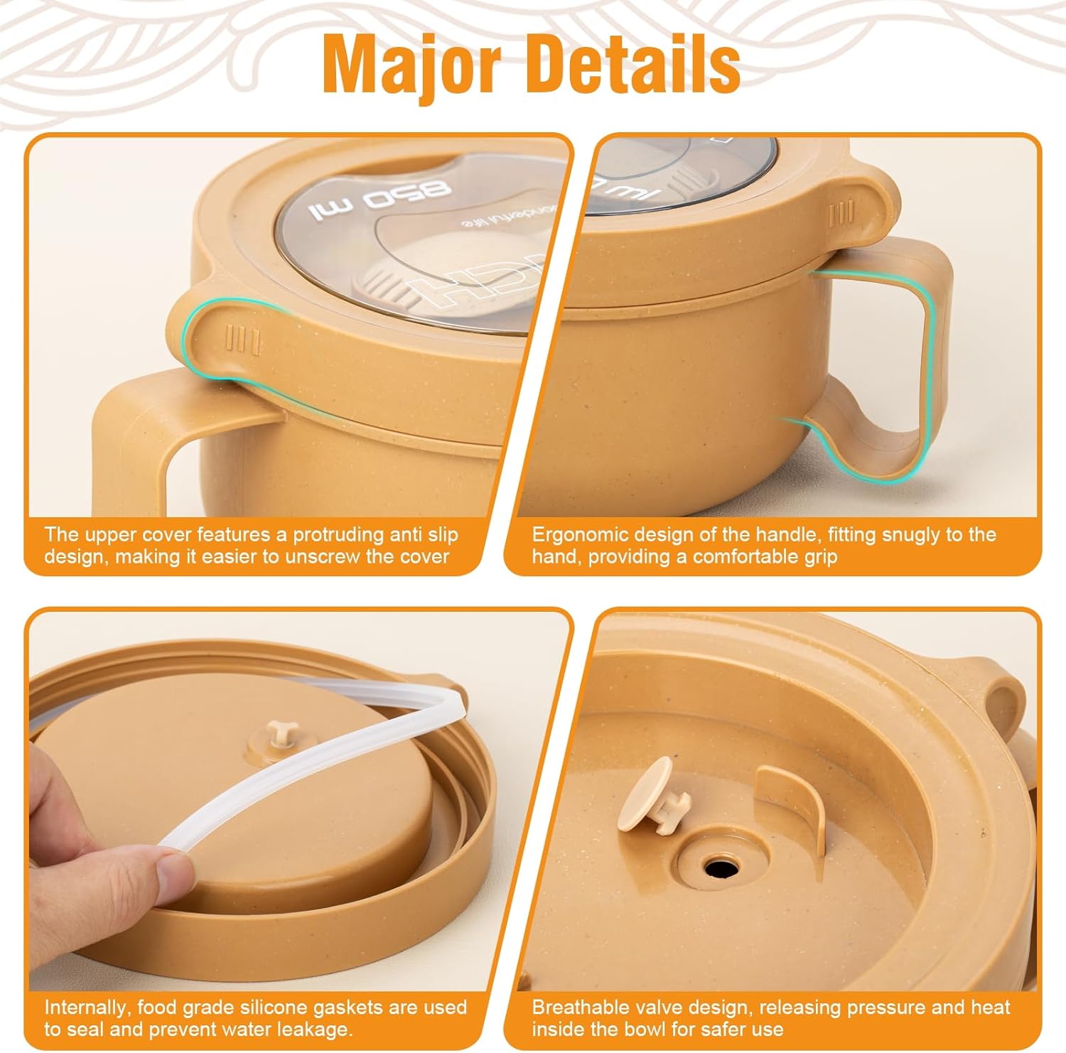 Microwave Bowl with Lids,Ramen Bowl,28oz Microwave Soup Mugs with Handles,for Soup and Instant Noodles,Oatmeal, Gumbo, Salad, College Dorm Room Essentials for Girls for Boys Apartment Essentials
