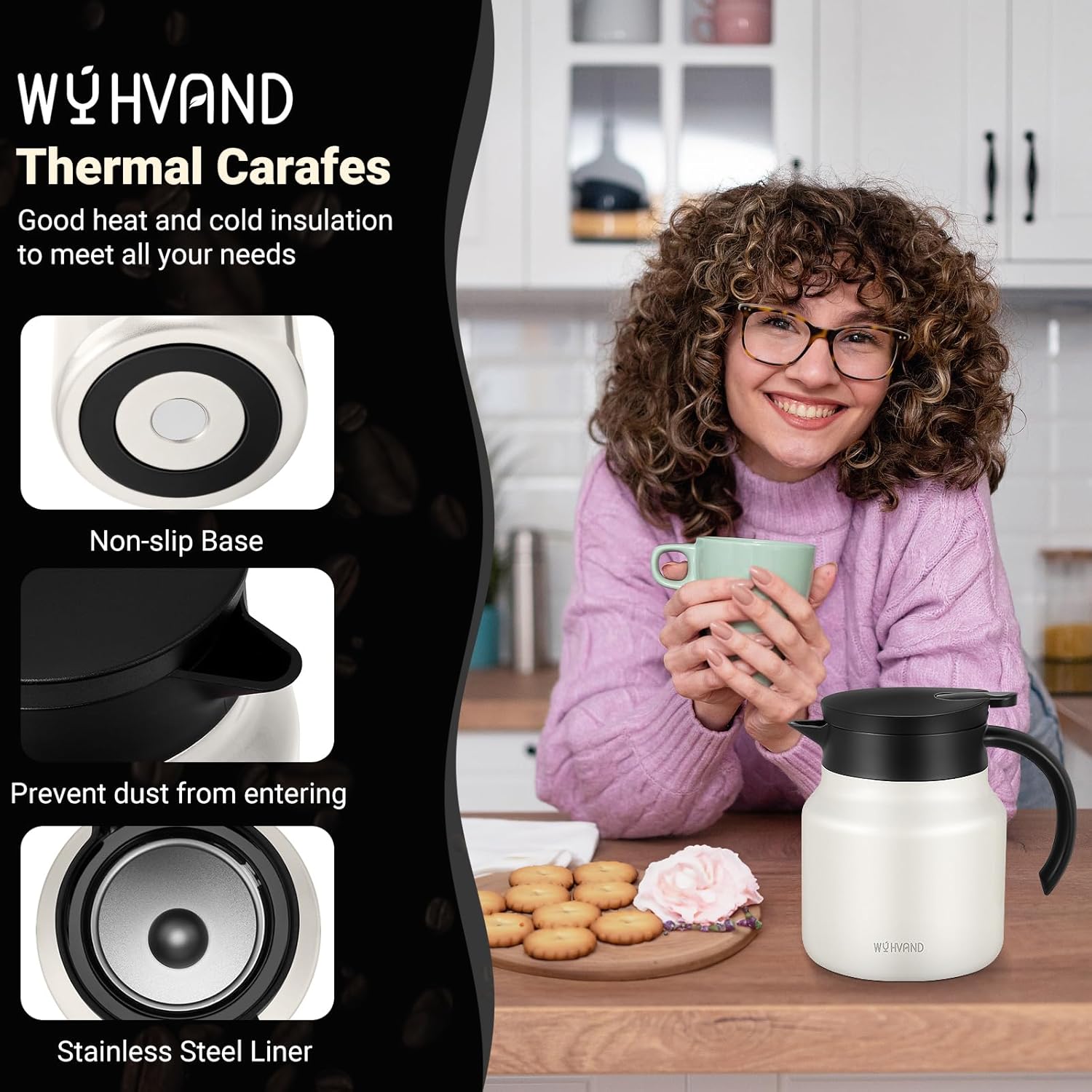 27Oz Thermal Coffee Carafes For Keeping Hot/Cold, Stainless Steel Coffee Carafe, Dustproof Insulated Water Carafe for Party/Home,Cream