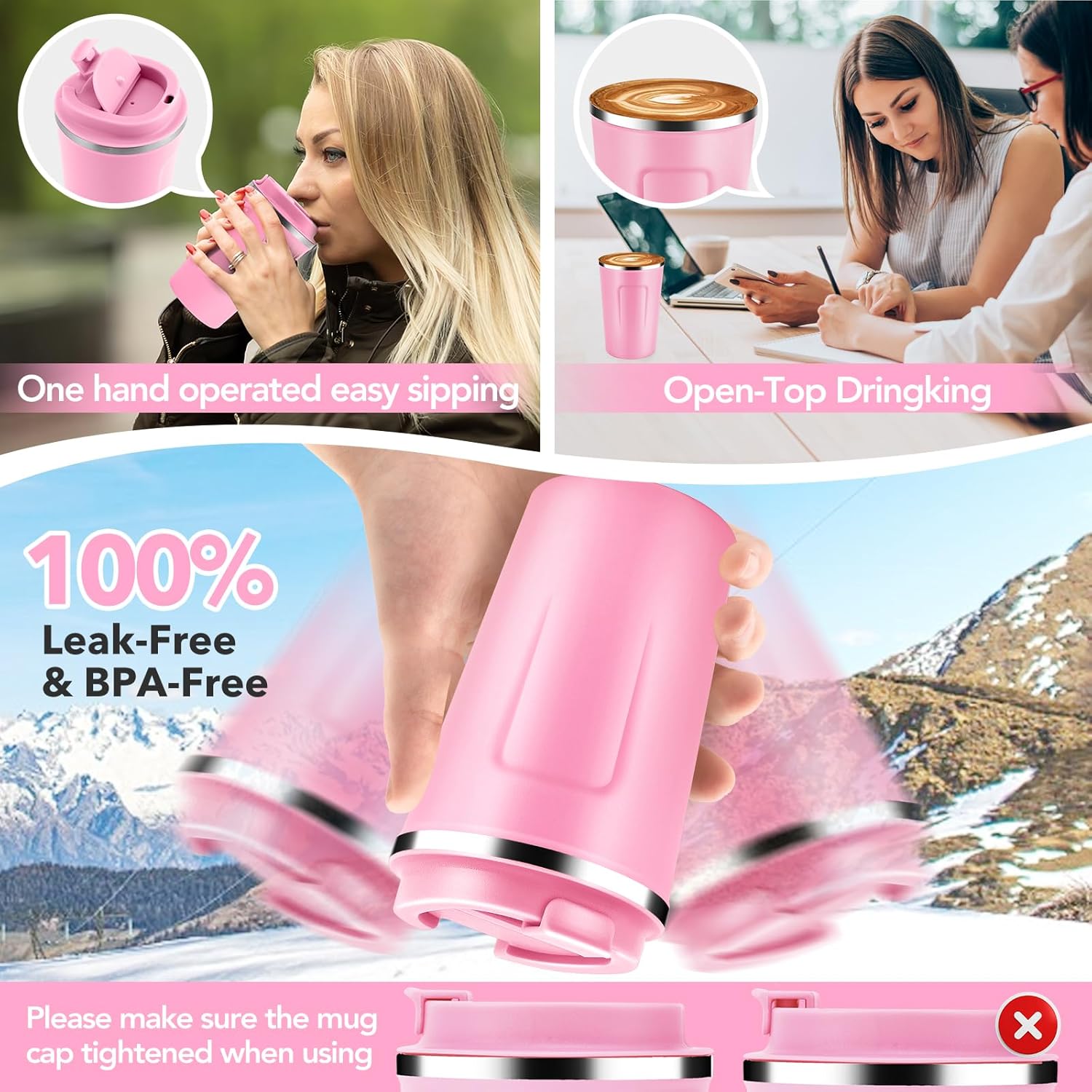 - 【Double Wall Vacuum Insulation】Our cups use double wall vacuum insulation technology to keep your favorite drinks at their ideal temperature for longer,keeping hot drinks warm for 6 hours and cold drinks cold for 12 hours.Allowing you to enjoy the best tasting coffee at any time of the day