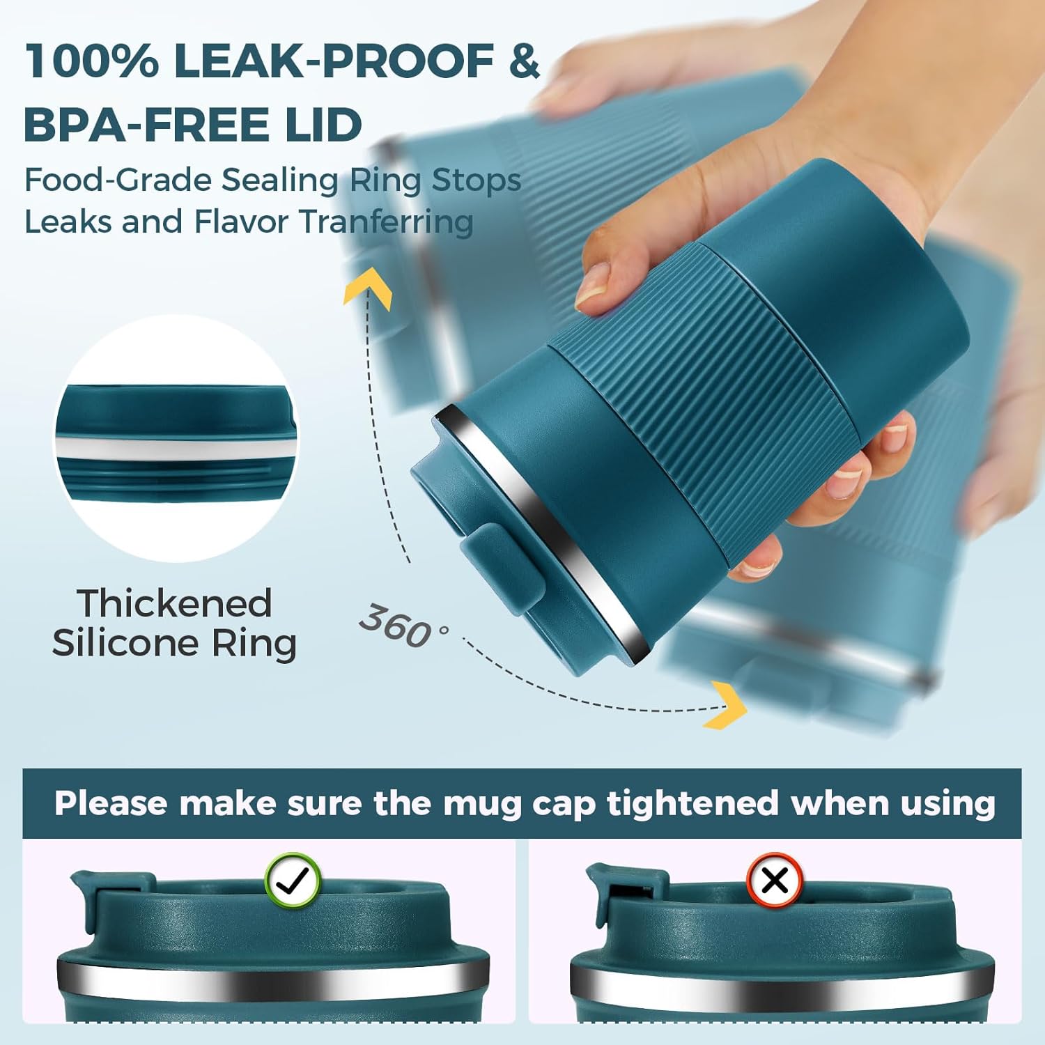 - 【18/8 Stainless Steel & BPA Free】Made of food grade 18/8 304 stainless steel,lead-free,highly insulating,and corrosion-resistant.Durable and never rusting.The cup lid and leak proof rubber ring are made of food grade rubber,free of bisphenol A,and have no odor.