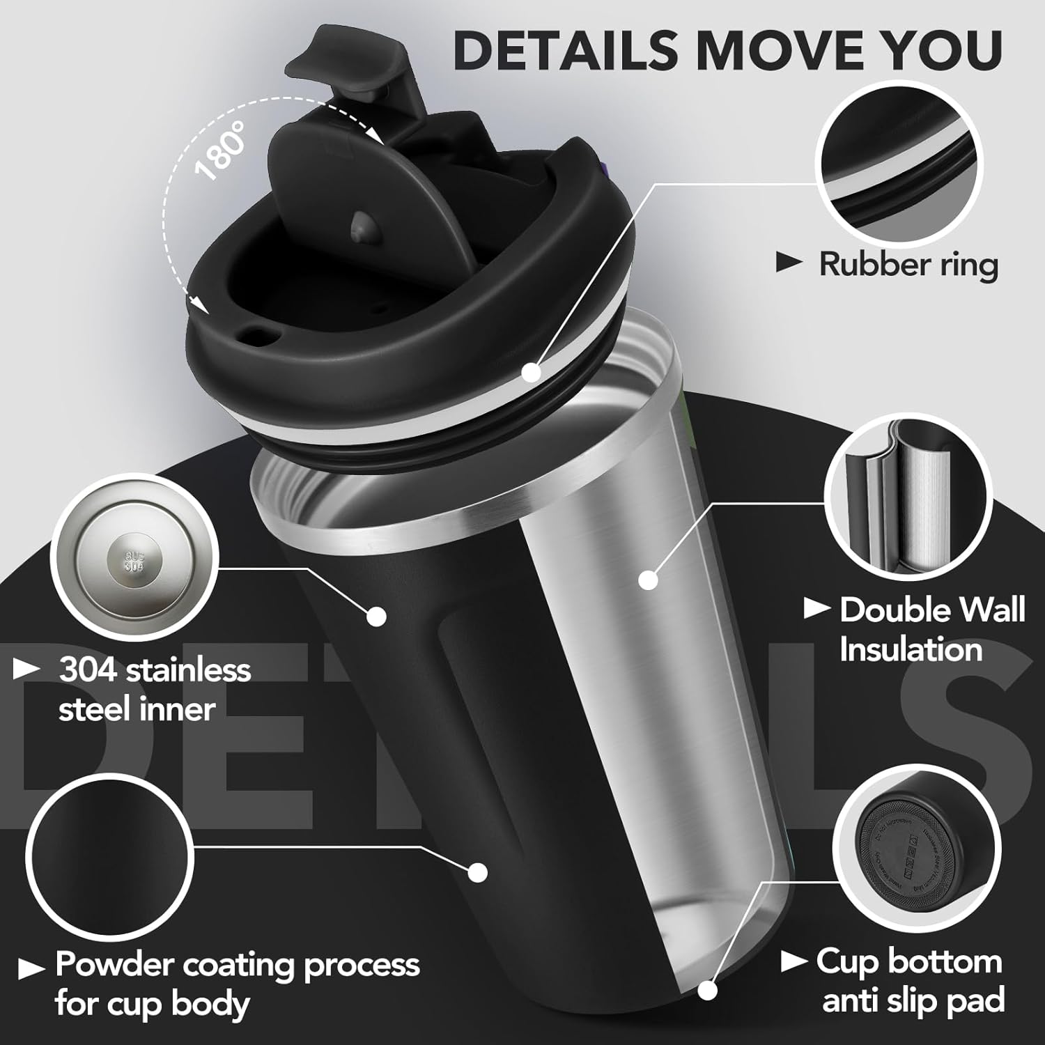 - 【18/8 Stainless Steel&BPA free】The Volhoply insulated travel coffee cup is made of high-quality food grade 18/8 304 stainless steel,which has better insulation and durability.Leak proof cup lid is BPA free,allowing you to drink with peace of mind,every sip is the best taste!